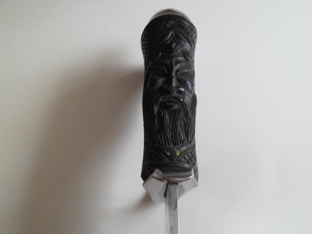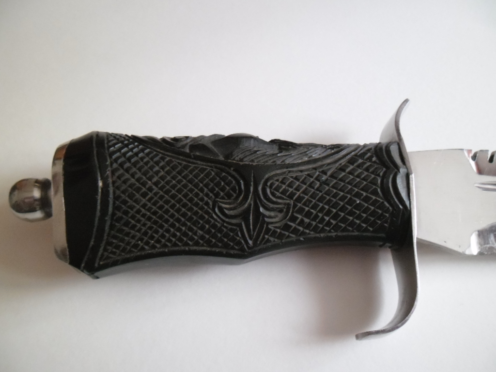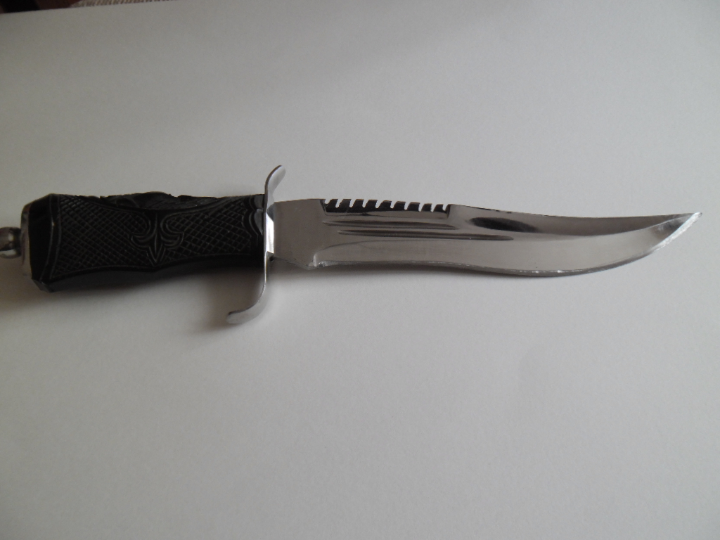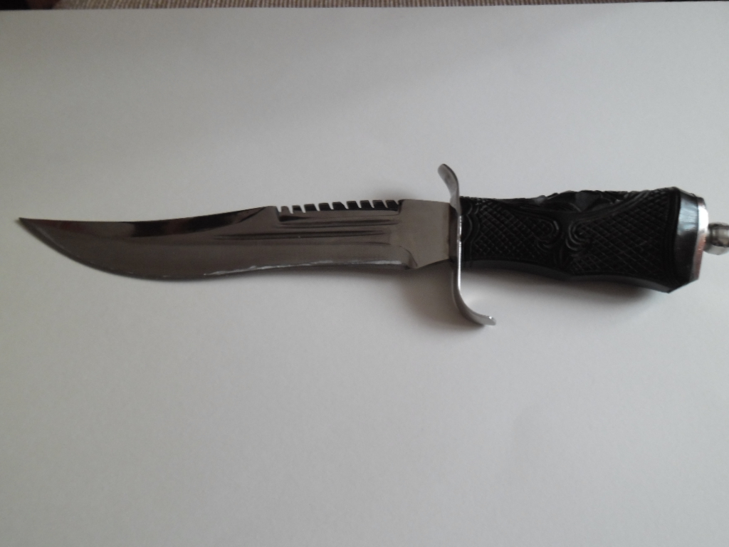Продам нож возможно из мест заключения. Метал клинка не знаю но магнитится. В отличии от больстера и навершия. Длина ножа 30см Длина клинка 19см Ширина клинка 3,2см