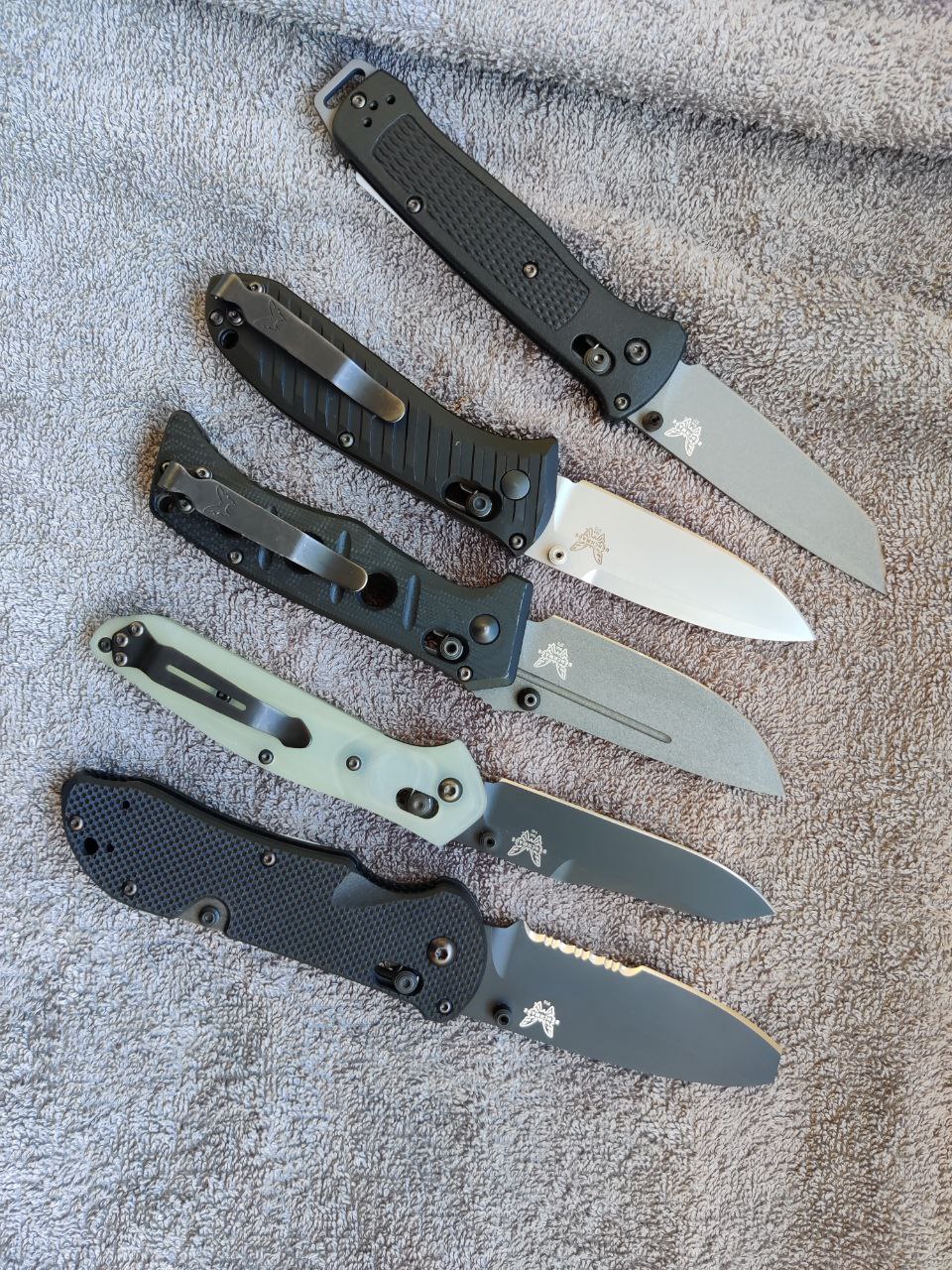 Продам ножи Benchmade, все оригинал, находятся в городе Киев, самовывоз Троещина, отправка новой почтой по предоплате. 1. Benchmade Bailout 3V. новый в коробке, 6000грн 2. Benchmade presidio 575 ALU, перетачивася, 5200грн 3. Benchmade Adamas mini 273 , перечивался, 7000грн 4. Benchmade Osborn 940 M4, перетачивался, 7000грн 5. Benchmade Triage, новый в коробке 5300грн Дополнительные фото по запросу.