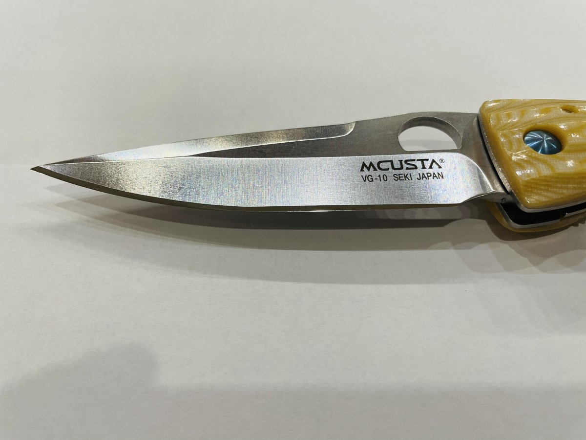 Damascus Basic Folder MCU23D (230$) • Длина клинка, мм: 83.00 • Общая длина, мм: 195.00 • Толщина клинка, мм: 3.00 • Тип режущей кромки клинка: Plain • Марка стали клинка: VG-10 • Твердость стали, HRC: 60-62 • Тип обработки клинка: Damascus • Материал рукояти: Africa Ebony wood • Толщина рукояти, мм: 17.00 • Тип замка: Liner Lock • Вес, гр: 98.00 • Страна производства: Япония 2. Katana Linerlock MCU44C (2 шт.) (230$) Specifications: Model - MCU44C Katana Linerlock Closed: 4.25 inch; Blade: 3.25 inch; VG-10 Stainless Standard Edge; Handle: Aluminum; Other Info: Lanyard Hole l Pocket Clip l Thumb Stud(s) Black handles with green accents Boxed Made in Japan 3. Damascus Tactility Elite MCU121D (310$) • Довжина загальна, мм: 210 • Тип замку: Liner lock • Довжина клинка, мм: 94 • Упаковка: Коробка • Країна виробник: Японія • Тип ріжучої кромки: Звичайна кромка • Країна походження: Японія • кишенькова кліпса: є • Маса, г: 85 • Матеріал клинка: VG-10 Damascus • Матеріал накладки / рукояті: микарта 4. Damascus Tactility Elite MCU123D (310$) • Довжина загальна, мм: 210 • Тип замку: Liner lock • Довжина клинка, мм: 94 • Упаковка: Коробка • Країна виробник: Японія • Тип ріжучої кромки: Звичайна кромка • Країна походження: Японія • кишенькова кліпса: є Маса, г: 85 Матеріал клинка: VG-10 Damascus Матеріал накладки / рукояті: микарта 5. Basic Folder Red MCU24R (180$) Description 4 1/4" linerlock. 3 3/8" VG-10 stainless blade with dual thumb studs. Elegant design with fingergrooved rosewood handles. Features a specially designed Teflon washer system for silky smooth action. Lanyard hole. Hand finished. Black nylon belt sheath. Made in Japan. 6. Yoroi Clad Damascus MCU37C (350$) Mcusta 37C Yoroi Clad, 2.75" VG-10/Damascus Plain Blade, Damascus Handle SPECIFICATIONS: Overall Length: 6.50" Blade Length: 2.75" Cutting Edge: 2.5" Blade Material: VG-10 Blade Style: Spear Point Finish: Damascus Edge Type: Plain Handle Length: 3.75" Handle Material: Damascus Color: Gray Frame/Liner: Stainless Steel Weight: 2.9 oz. Opener: Thumb Stud Lock Type: Liner Lock Country of Origin: Japan 7. Ganshin (300$) Описание Closed: 4.75"; Blade: 3.63" l Damascus Steel l Standard Edge l Satin Finish; Handle: Micarta; Other Info: Thumb Stud(s) l Lanyard Hole. Textured ivory handles. Black nylon belt pouch. Характеристики Сталь - VG-10 damascus Покрытие / отделка клинка - Satin Фиксация клинка - Liner Lock Механизм открытия - Шпенёк Рукоять - Micarta Вес: 125 г Длина общая: 213 мм Длина клинка: 92 мм Длина рукояти: 121 мм Толщина клинка: 3 мм Страна изготовления: Япония Дополнительные приспособления и характеристики: Отверстие для темляка