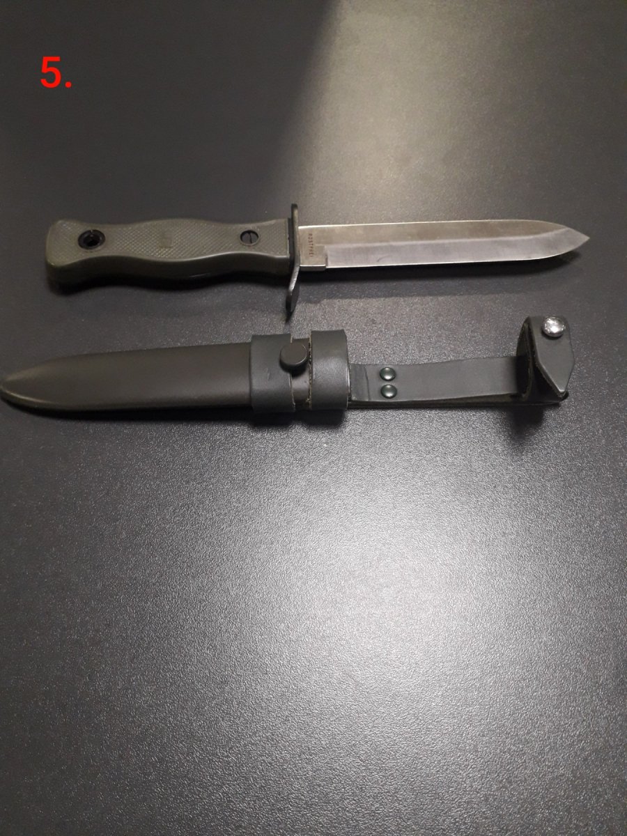 Продам ножі-репліки 1.Ніж Finn Knife. Сталь клинка- 440с Ручка-дерево+латунні вставки В комплекті шкіряні ножни. Ціна 1200 грн 2.Ніж Army. Репліка на армійський ніж США. Сталь клинка 440с,з сирейторною заточкою Ручка-FRN В комплекті ножни з нейлону. Ціна 1500грн 3.Ніж US Survival Special Force Ніж для виживання,в компекті присутній малий набір для виживання. Сталь клинка 440с Ручка-пластик В комплекті пластикові ножні,+ набір виживання. Ціна 1195 грн. 4.Ніж BW Combat Knife KM2000 Даний ніж є якісною копією легендарного бойового ножа військ Німеччини KM2000. Ніж прийнятий на озброєння німецьким Бундесвером. Клинок виконаний в стилі «american tanto», сталь 440с Ручка-пластик В комплекті ножни з пластику,що мають кріплення для системи MOLLE Ціна 1650 грн 5.Ніж BW Репліка легендарного ножа Бундесверу. Сталь клинка 440с Ручка-пластик Ножни металеві з шкіряною підвіскою. Ціна 1650 грн. 6.Ніж G10 Combat Масивний ніж з товщиною клинка 5,5 мм Присутня сирейторна заточка леза Ручка-G10 В комплекті нейлонові ножни. 7.Ніж G10 KYDEX Суцільне лезо Сталь клинка 440с Ручка-накладки з G10 В комплекті ножни з Кайдексу