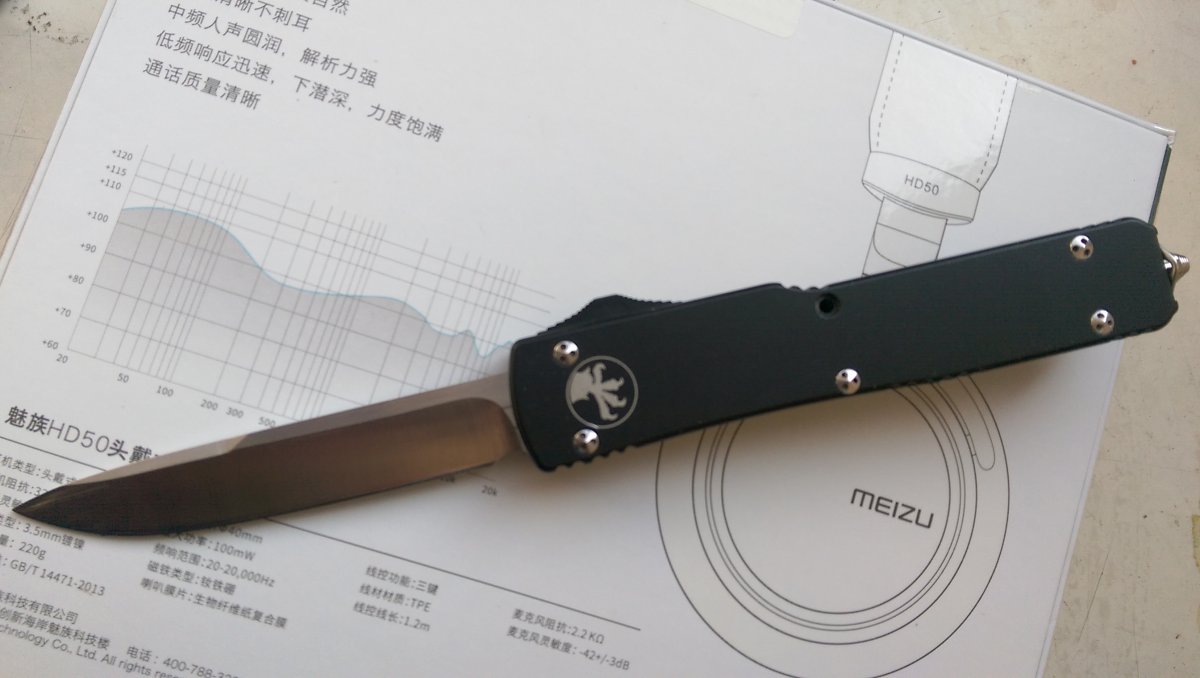 1 Microtech Ultratech Drop Point (Replica) Сталь: 9cr18MoV Длина клинка: 8.6 см Длина ножа: 21.5 см Толщина обуха: 3.15 мм Толщина рукояти: 11.6 мм Материал рукояти: алюминиевый сплав Клипса: съемная, двусторонняя Вес ножа: 96 г потерялся один болтик+осталась залысена после переточки коробка чехольчик в комплекте 700грн 2 Microtech Halo 5 Tanto Сталь клинка: D2 Длина ножа: 27.3 см Длина клинка: 11.7 см Толщина клинка: 4.25 мм. Длина ручки: 15.6 см Рукоять: дюралюминий Вес ножа: 145 г Механизм фиксации: автомат Ножны: кайдекс, тек-лок коробочка ножны с тек-локом в комплекте 800грн