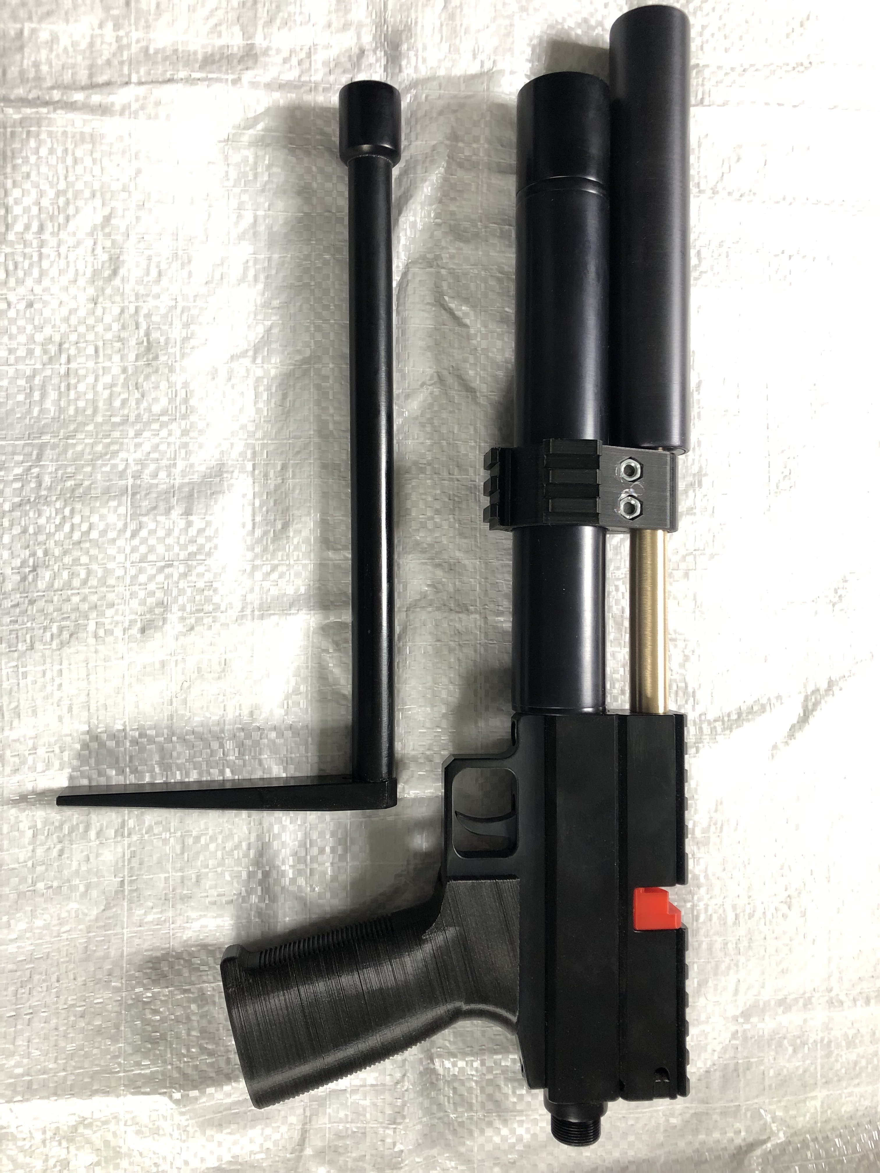 Продам.Кіт 90 кубів опрессований на 380атм,манометр 40мпа,порт 7мм. Коробка біатлонка,вівер,ствол латунь 16 см,приклад на різьбі,СМ простий,вижимний,двухдетальний,схожий на крисячий. Вісімка з вівером знизу і збоку. Налаштований 230-160атм близько 20ти пострілів 230-240-230 кулею 0,87є піджим пружини ударника можна чуть підняти. Довжина 41см+пприклад 26см. Відстріл 45м Ціна 10000грн