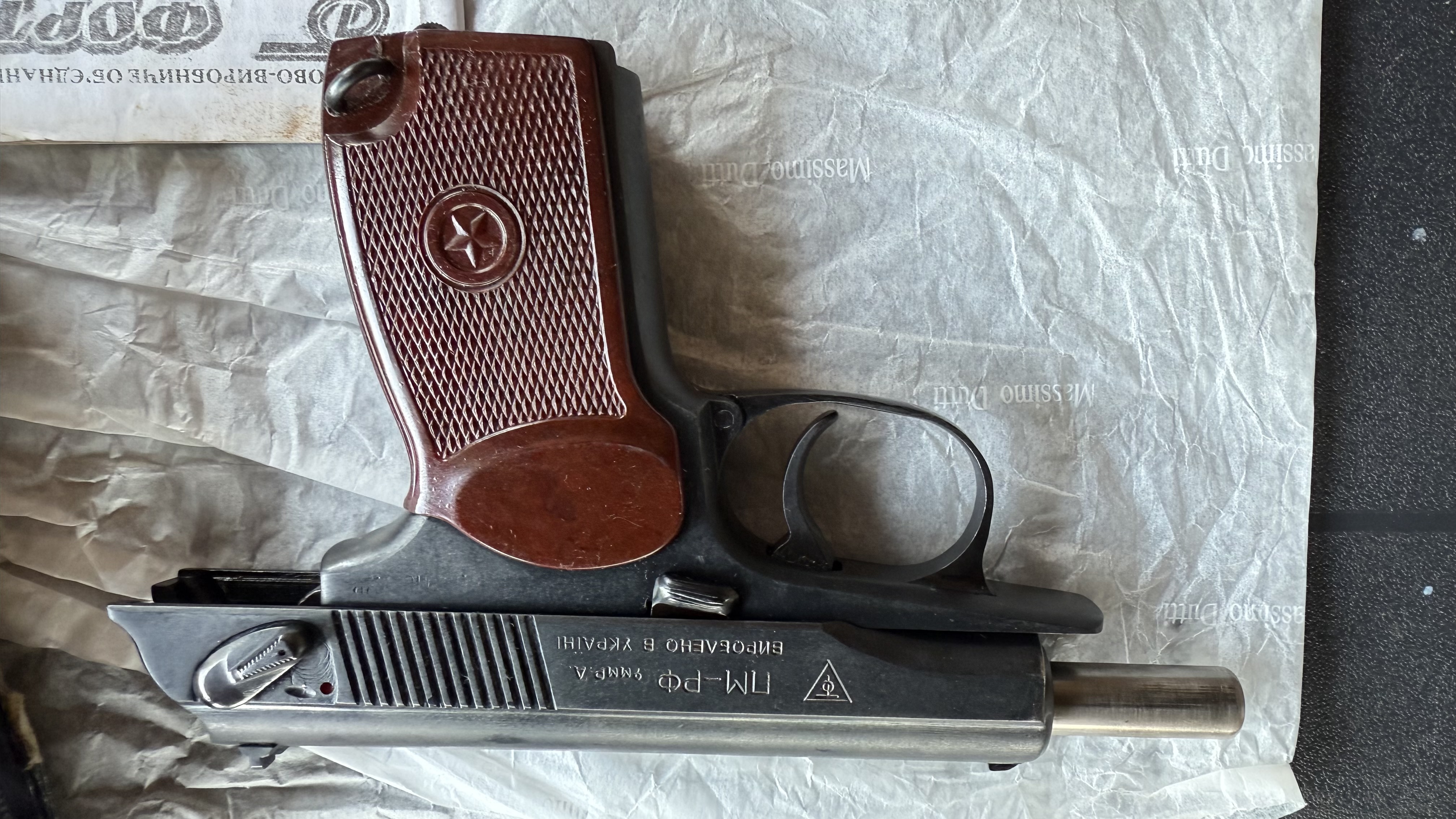 Продам пістолет ПМ-РФ з двома магазинами, кобурою, шомполом і набором для чищення. Пістолет новий, видно по фото, був куплений у 2019 році, настріл до 20 патронів, весь час зберігався. На зараз відстріляний в НДКЦ і отриманий дозвіл на реалізацію. Локація- Суми. Ціна - 25000 грн.