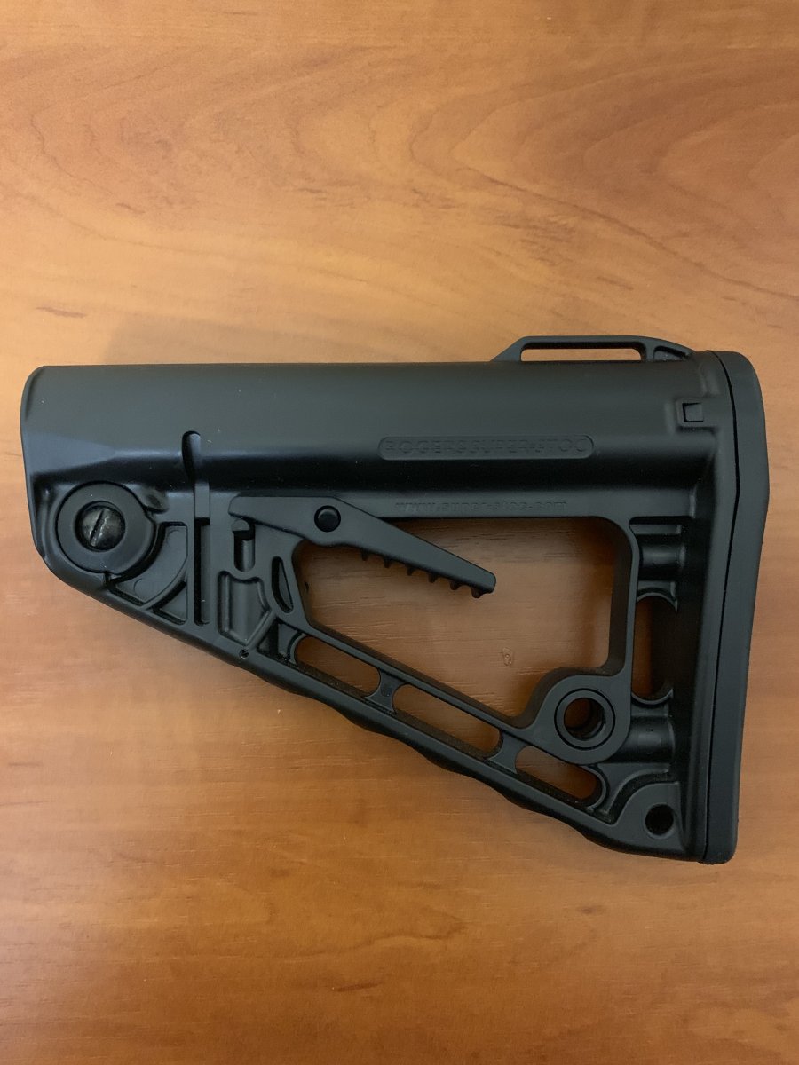 В догонку немного описания: приклад Rogers Super Stock Станет на любой карабин при условии установки трубы. Крепление под qd андабку и отдельное под ремень, фиксатор положения без люфта, съемный затыльник