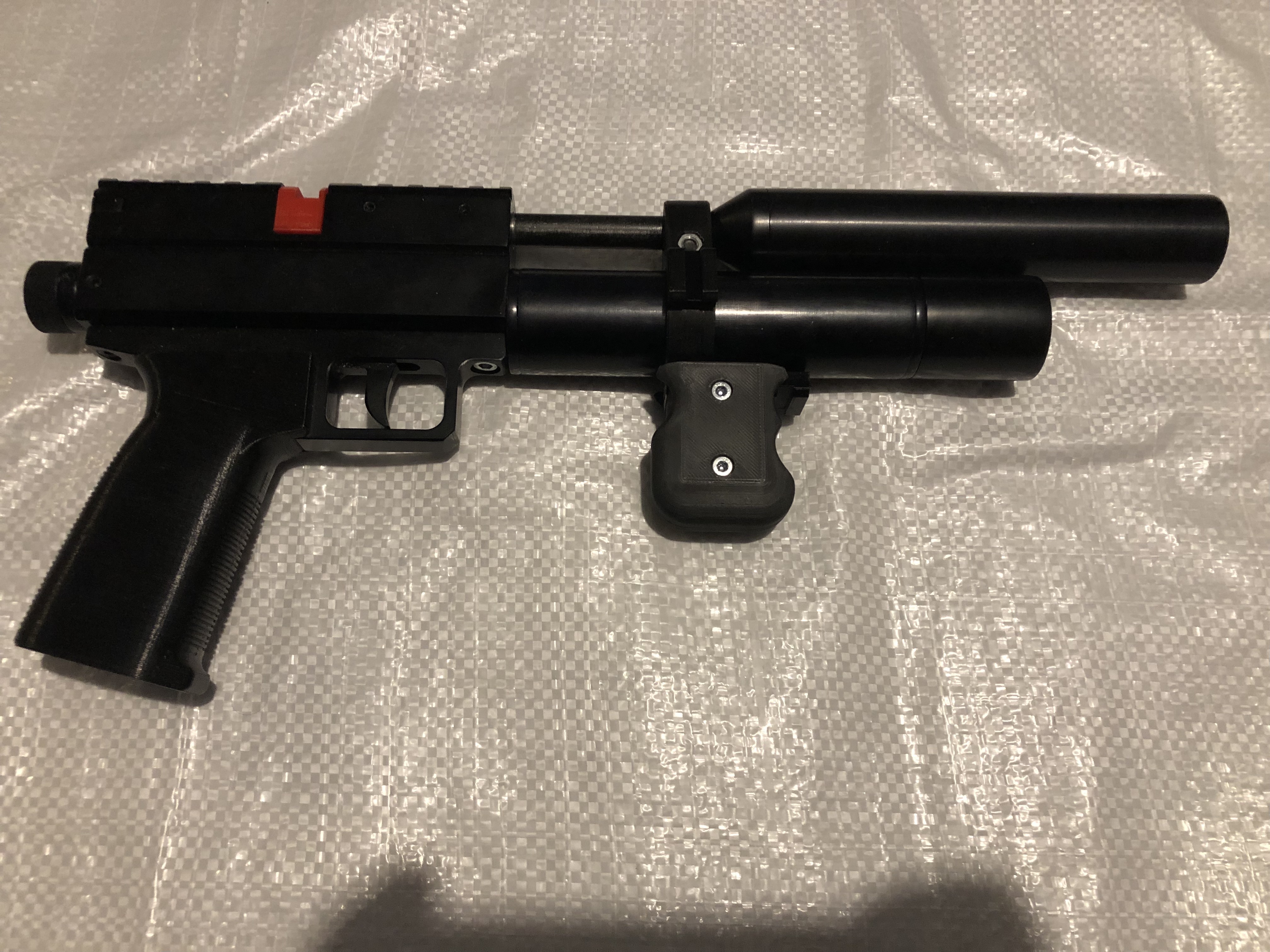 Продам.Кіт 45 кубіків, порт 7мм опрессований на 380атм,манометр 40мпа. Коробка біатлонка вівер,ричаг зліва,ствол іж 53 довжиною 160мм,модер розбірний. Спуск двухдетальний вижимний не регулюєтся,копія крисячого. Довжина до зрізу модера 38см. Налаштований 230-150атм близько 20ти пострілів 225-235-225 кулею 0,67 піджимом можна спробувати ще щось добавити. Задня пробка з різьбою 18Х1 під приклад.