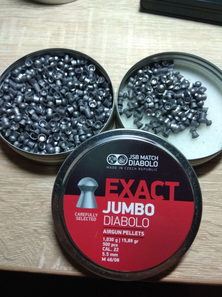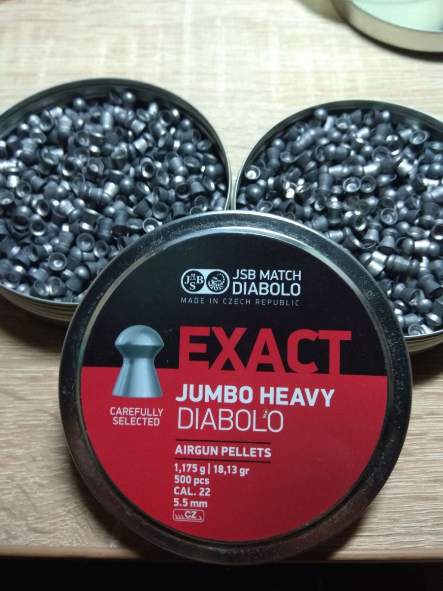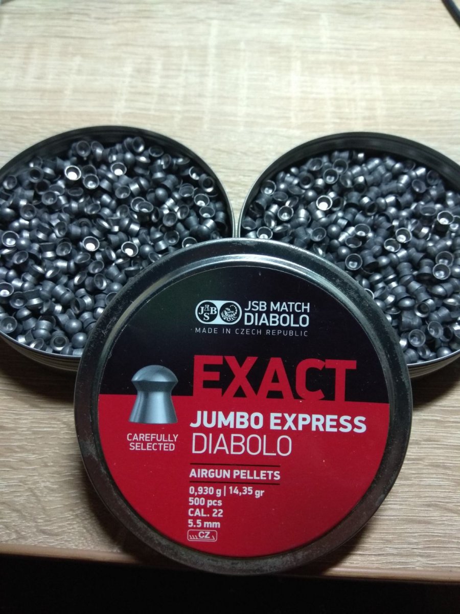 Пули JSB Exact Jumbo Express 5.52 mm 0.93 g 760 шт. цена за все 450 гр. Пули JSB Exact Jumbo 5.51 mm 1.03 g 610 шт. цена за все 400 гр. Пули JSB Jumbo Heavy 5.52 mm 1.17 g 880 шт. цена за все 500 гр. Все сразу 1250 гр..