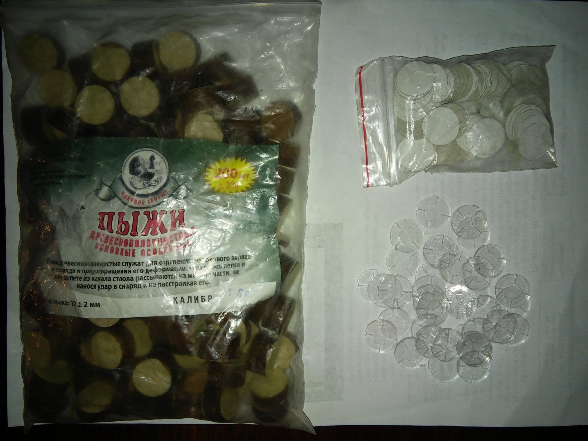 Продам одним лотом остатки пыж контейнер 16 калибр 133 шт, пыжы 130 шт, прокладки. За все 200 гр.