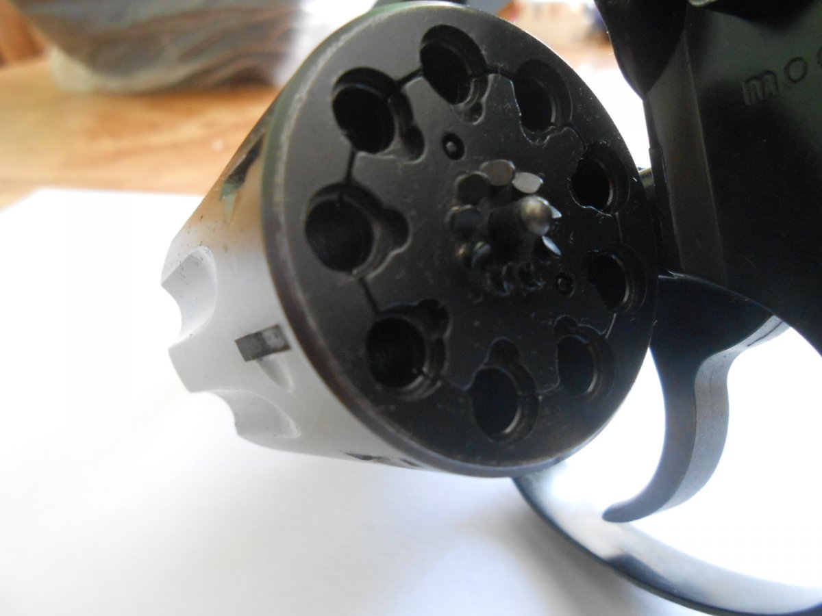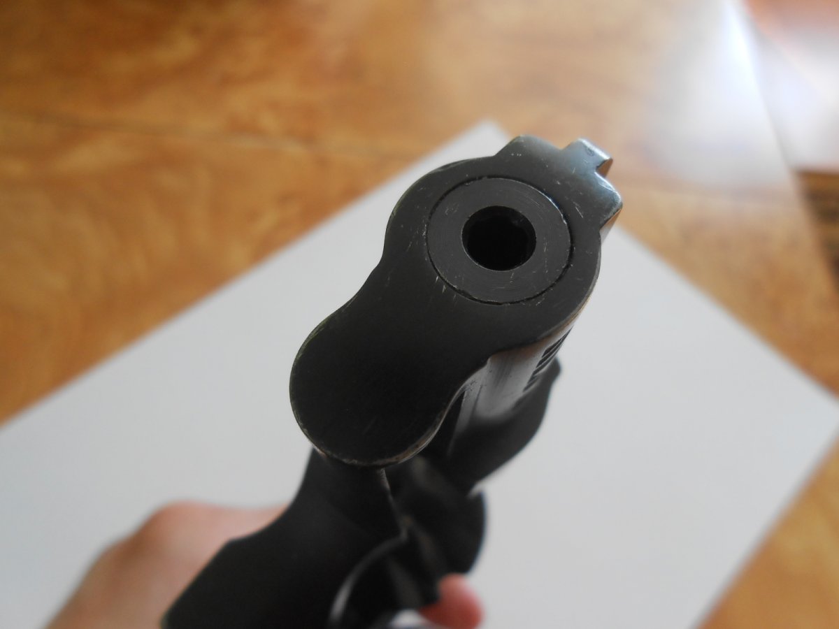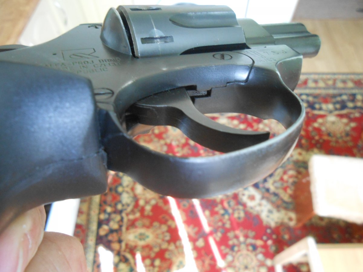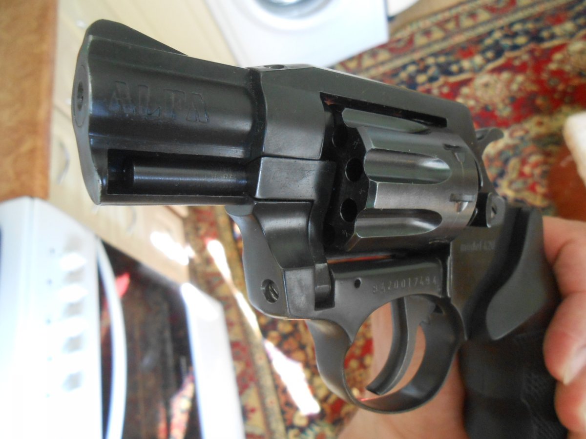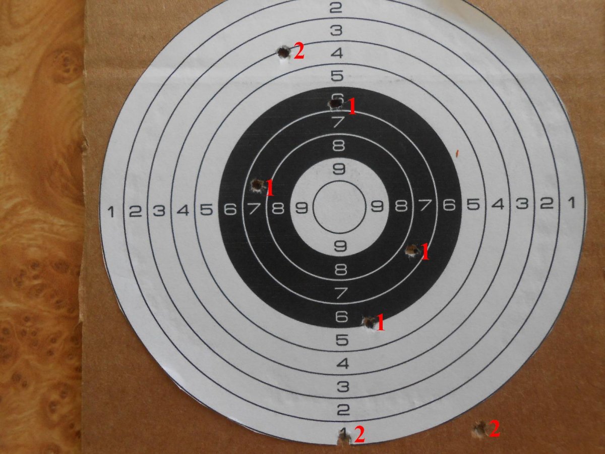 Продам револьвер Alfa 420 в отличном техническом состоянии. Покупался здесь же на форуме в мае текущего года, но сейчас я снова решил вернуться к старой доброй пневматике. Настрел чуть более 50 выстрелов. Предыдущий хозяин возил в кобуре в бардачке автомобиля, поэтому есть потёртости от кобуры. Некоторые места были немного подкрашены автокраской (на фото выделил красным цветом). «Чехами» лупит здорово, с 7 метров пробивает 2-литровую балсанку с водой навылет, «немцев» не любит. Куча, как для флобера, тоже ничего (на фото отверстия №1 – «чехи», №2 – «немцы», дистанция 7 метров). Люфты и шаты в пределах заводских, то есть стандартные как для чешских револьверов. В комплекте сам револьвер, кобура и 11 «чехов».