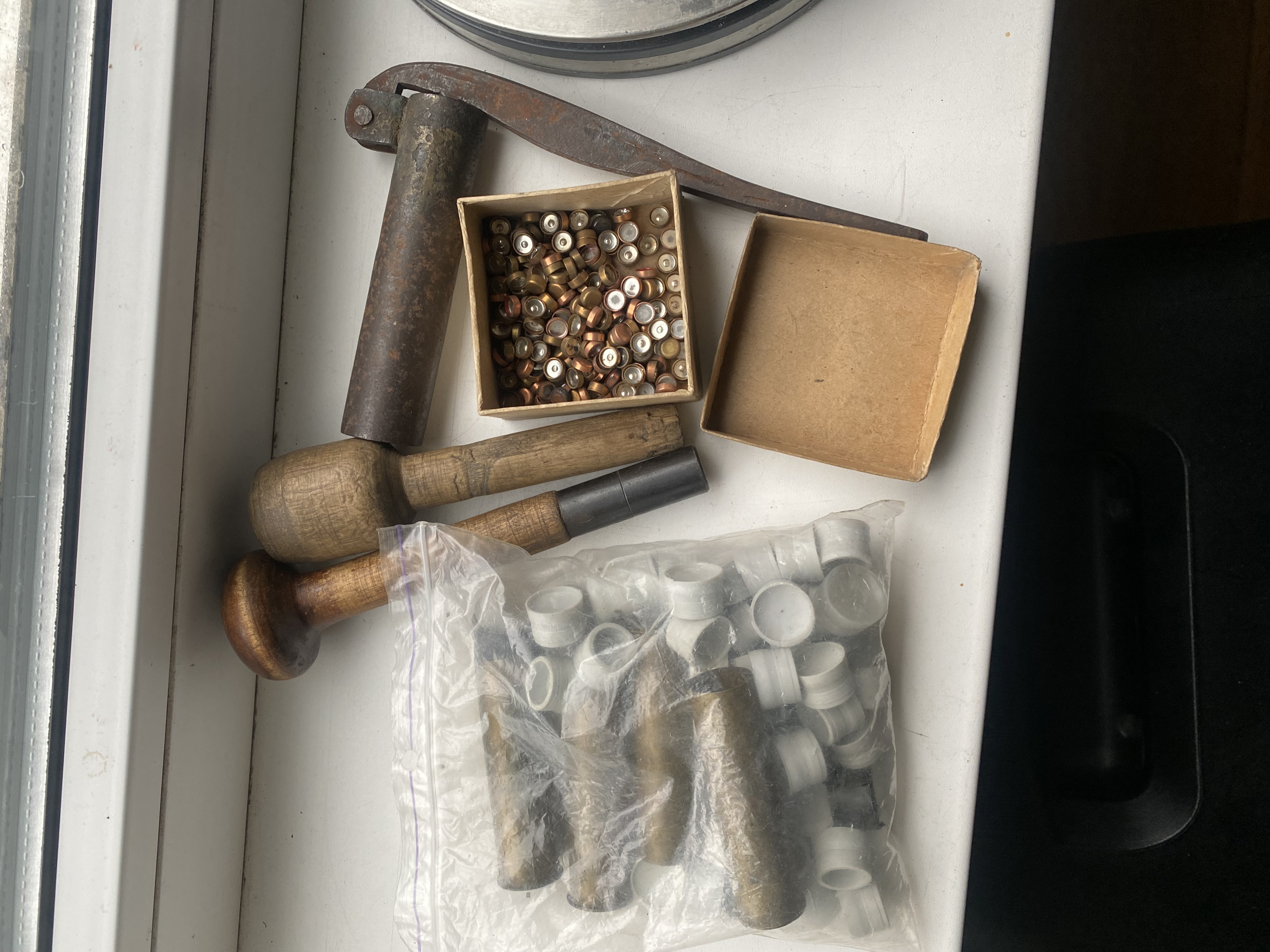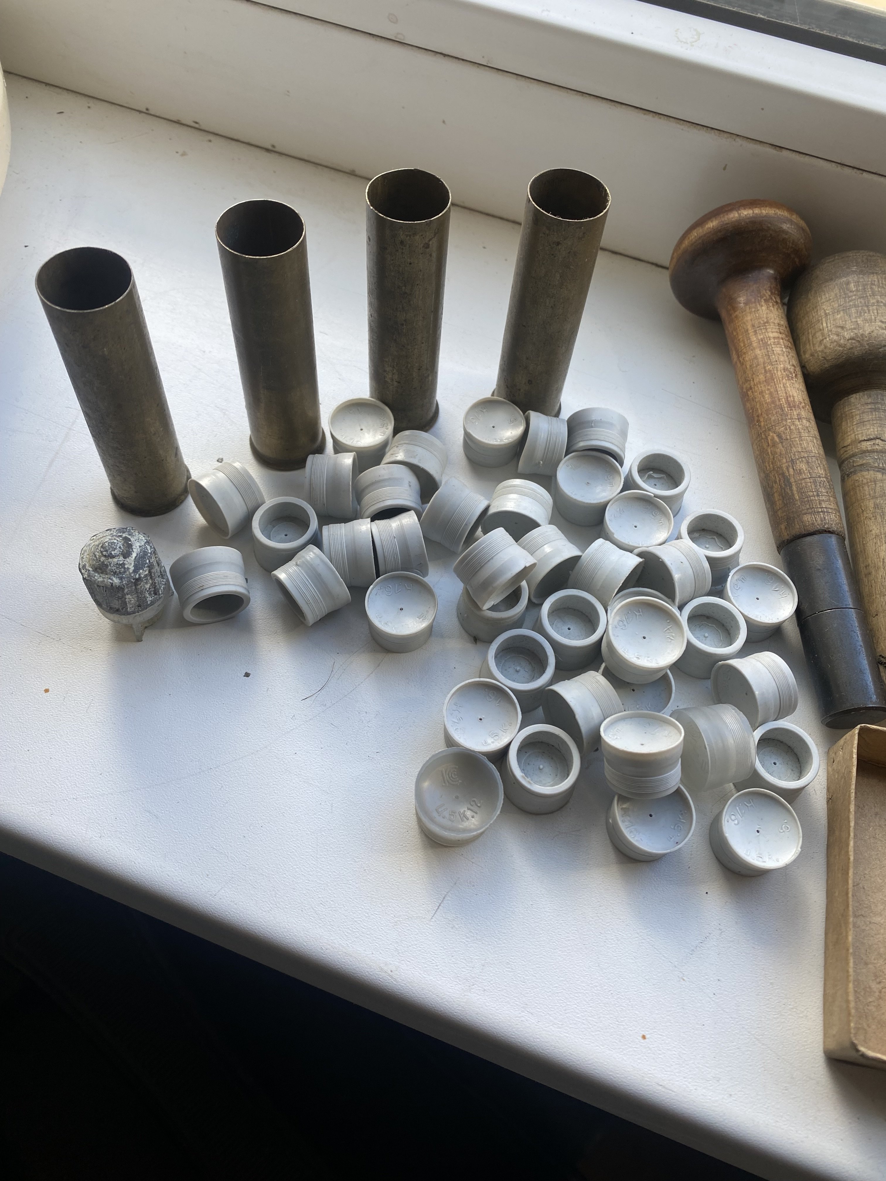 Продам : 1. Прибор барклай 16 калібр з навойником (таке враженн що саморобний) 250 грн. 2. Центробой 250 шт. -250 грн 3. Дріб свинцева номер 5-6 (сита щоб пересіяти немає. 2.8 кг-500 грн 4 отбюратори пластикові 42 шт.+ 4 латунні гільзи 16 калібру + куля 50 грн.