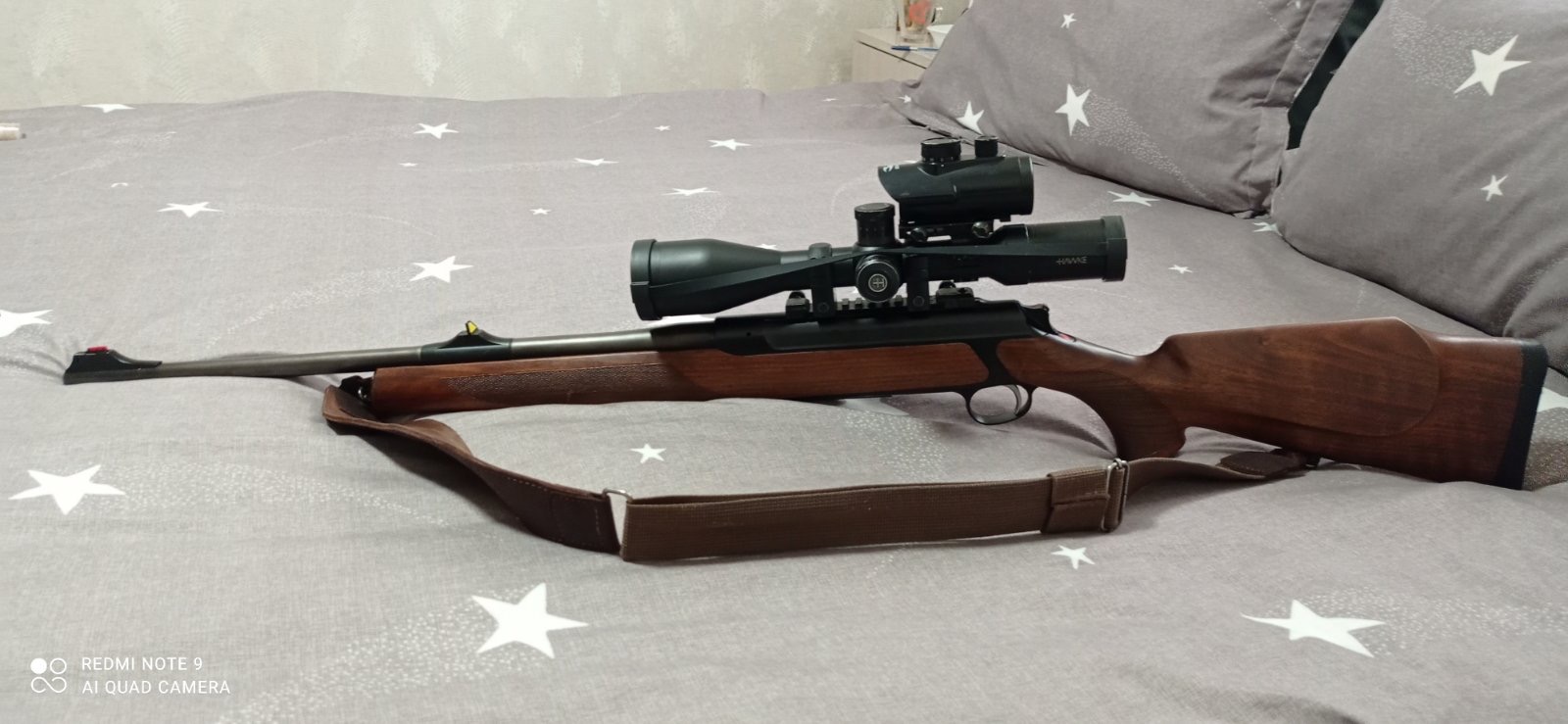 Продам свій напівавтомат Sauer S303 Classic в калібрі 300 Win.Mag. Магазин на 2 патрона + 1. Куплений у магазині Ібіс. Настріл приблизно до 40 патронів (пристрілка оптики і декілька раз полювання). Стан на 5. Ціна - 115 000 грн. (2800 дол.). Додатково є : Оригінальна адаптершина Recknagel - 4000 грн. Приціл Howke Vantage 30 WA 4-16*50 з підсвіткою. Допи продам після карабіна або з ним. Карабін знаходиться в Чернівецькій області. Тел. +38(097)169-10-38