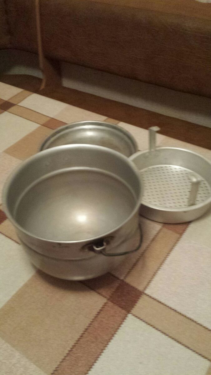 Продам б/у котелок, объем 3 л. В комплекте крышка и вставка сито-пароварка. Вес комплекта 500-520 грамм. Без сита граммов 400 будет Цена 450 грн