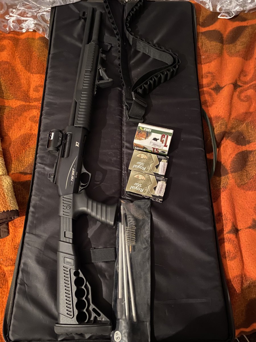 Продам гладкоствольну помпову рушницю Target Х7 tactical 12к.+коліматорний приціл Bushnell trs-25(оригінал) Патронник 12x76мм. Ємність магазину 7+1 Без дульних звужень(циліндр) Ствол 50см. Настріл +/-1000 Здебільшого самокрутами 32гр. Стан майже в ідеалі,за винятком кількох подряпин В комплекті чохол,бандольєра на 50 набоїв ,набір для чистки,нахилена рукоятка репліка магпул,коліматор і 200 патронів (100 дріб No4 32gr. Bornaghi deluxe,50 кульові Aquila T5 32gr,10 кульові Rio Royal Star 32gr,40 картеч 8,6мм Aquila T5 32 gr.) Територіально Луцьк Ціна 400$ за все,окремо поки нічого не продаю,резерв в темі,питання в особисті.