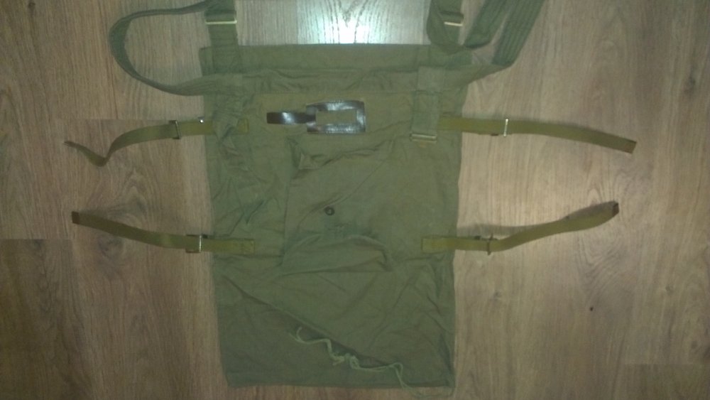 Вещевой мешок солдатский (армейский) или, что чаще употребимо вещь-мешок - это мешок цилиндрической формы с клапаном в верхней части. Закрывается с помощью затягивающихся лямок. Был введен в советской армии в 40-х годах. Аналогом послужил вещь-мешок царской армии времен Первой Мировой Войны. Данный образец 1970-1988гг. выпуска. Инструкция по эксплуатации вещь-мешка: У солдатского вещь-мешка одна лямка, концами пришитая к разным краям днища. Просовываете руку в лямку посередине ладонью вниз, наклоняете ладонь, захватываете левую и правую части веревки, та часть веревки, которая лежит на руке (сверху) спускается под захват. Получилась петля. Её и надеваете на горлышко мешка после чего затягиваете. Цена - 30 грн. Сделано в СССР!
