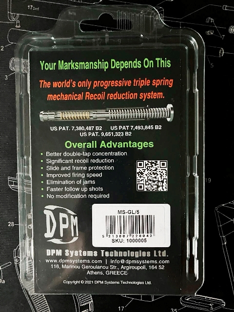 Пружина возвратная DPM .Подходит на Glock-17/22/31/37.ЦЕНА:4600грн. Более быстрый запуск последовательности выстрелов Улучшенная скорость огня Рама и защита от скольжения Устранение инцидента Значительное снижение отдачи Лучшая концентрация в двойном касании Лучший контроль и большая точность