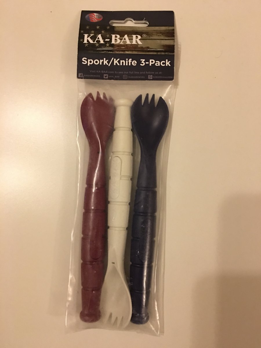 Продам Новый Тактический набор KA-BAR 9909USA All American Polymer Tactical Spork with Hidden Serrated Knife, 3 Pack - Red, White & Blue. Американский Set Tactical Spork/Knife , который изготовлен из пищевого и водостойкого гриламида (тип полимера), оснащен вилкой / ложка комбо и имеет зазубренный нож, спрятанный в ручке. Доступ к ножу можно получить, потянув шплинт в противоположных направлениях с каждого конца. Характеристики Длина лезвия: 2,5 " Общая Длина: 6.875 " Материал: Гриламид FWA LV-50H (Полимер) Вес: 3,9 унции. Сделано в США Цена: 649 грн. Резерв, оплата, отправка и тд.