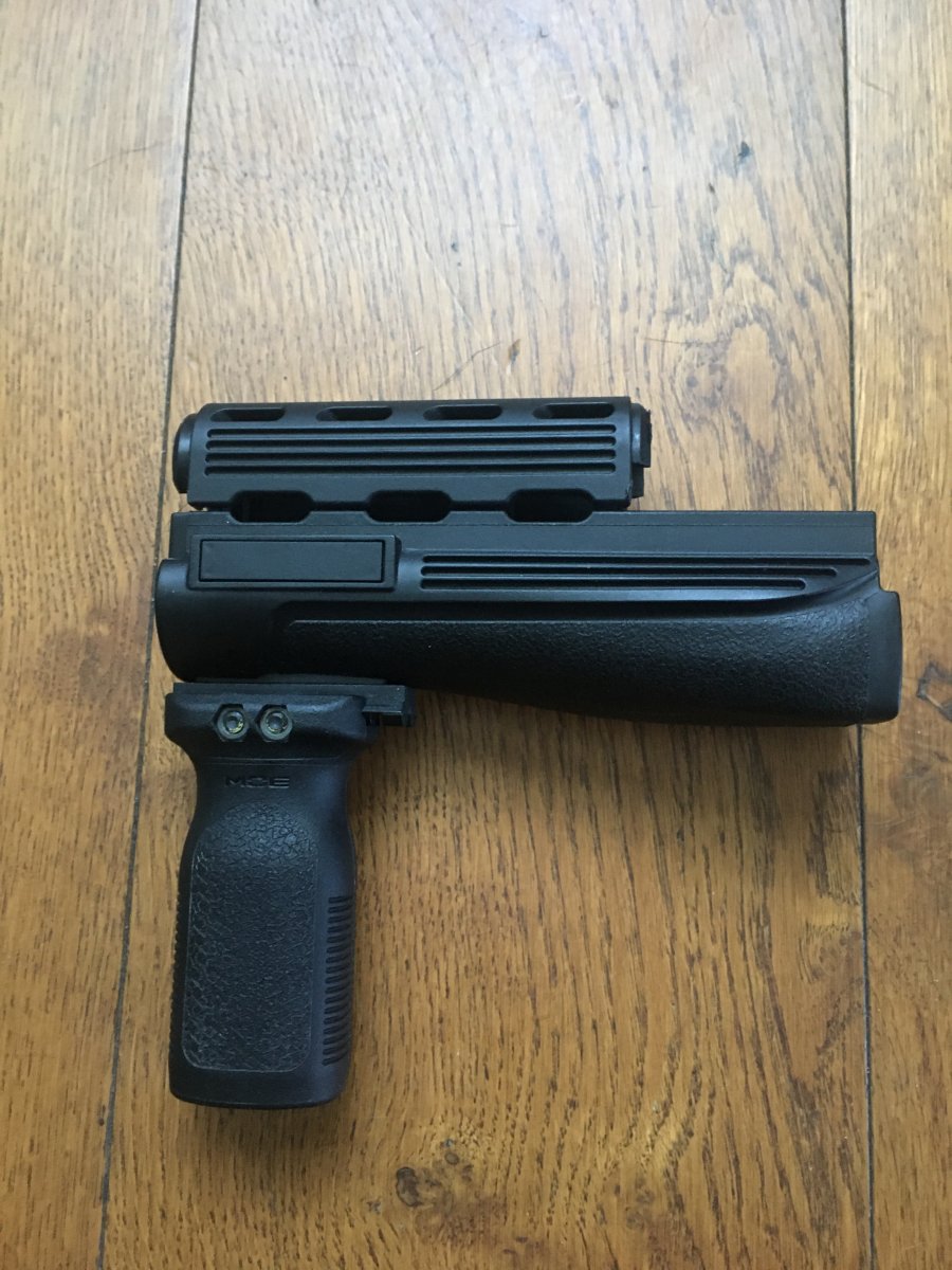 Цевье ATI Scoprion для АК Анатомическое цевье с возможностью установки 4 планок Пикатинни (3.6.9 и 12 часов) Главное преимущество - возможность комфортного удержания орудия непосредственно за цевьё. В комплекте: Цевье 4 планки Пикатини 4 заглушки под планки Антабка под ремень / сошки Комплект болтов и гаек Шестигранник Цена : ПРОДАНО Состояние 5+ (1 примерка) РУЧКА В КОМПЛЕКТ НЕ ВХОДИТ. Продается отдельно!
