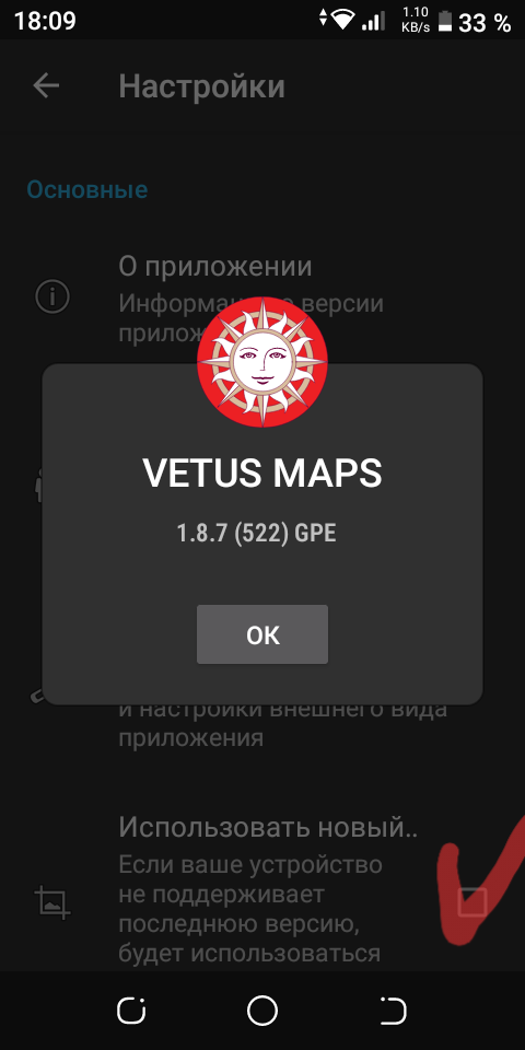 Оно показывает ошибку карты 1.8.7...тоесть это НЕ в телефоне проблема,скорее разработчики шо то накрутили...в плеймаркете оставте отзыв,- единственное что можно сделать это так...все!