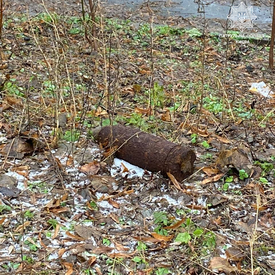 Патрульна поліція Києва Мешканець столиці знайшов артилерійські снаряди часів Другої світової війни, коли вигулював собаку Подія сталася сьогодні в Печерському районі. На лінію 102 надійшло повідомлення про небезпечну знахідку на бульварі Лесі Українки. Прибувши за адресою, патрульні одразу загородили місце події та викликали вибухотехніків. Спеціалісти підтвердили, що знайдені предмети — артилерійські снаряди калібром 76 мм та 105 мм. Вибухотехніки вилучили знахідки та знищили їх на підривному майданчику.