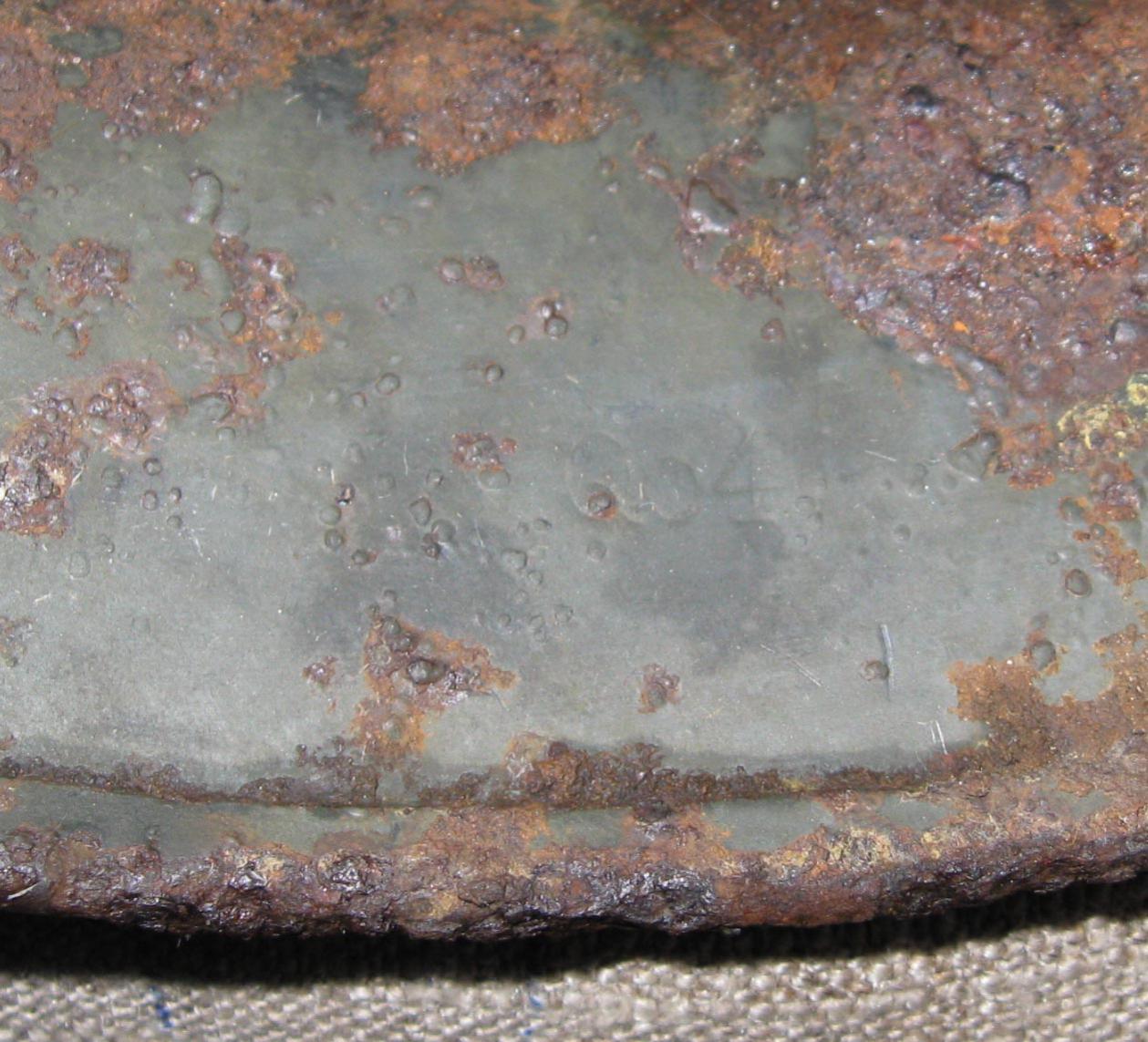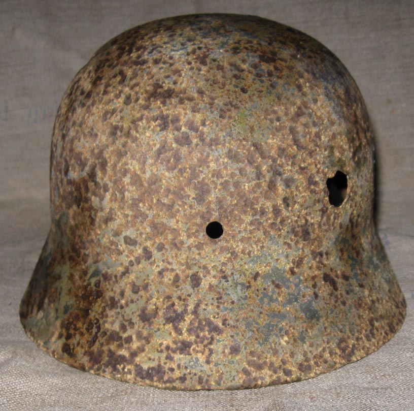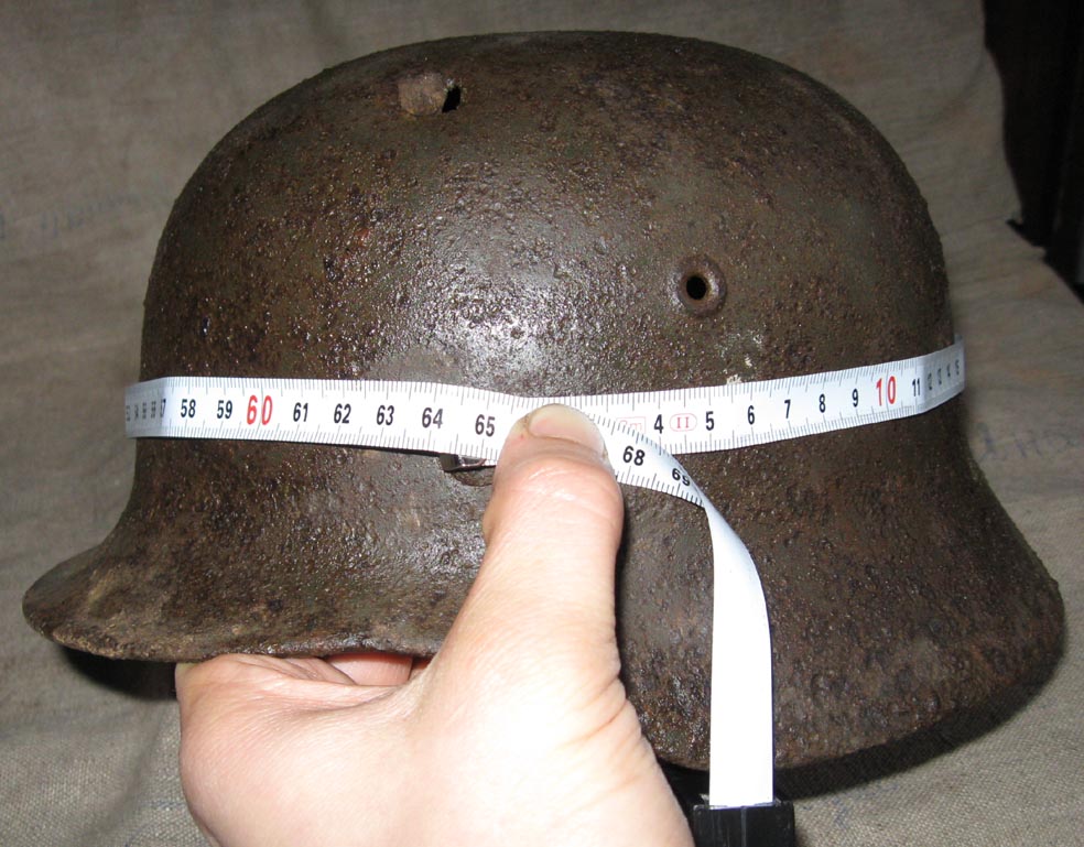 №1 М40 Металл крепкий, имеет боевое повреждение, входное и выходное отверстие (пуля). Местами родная краска. По кламерам 64см. Обруч.