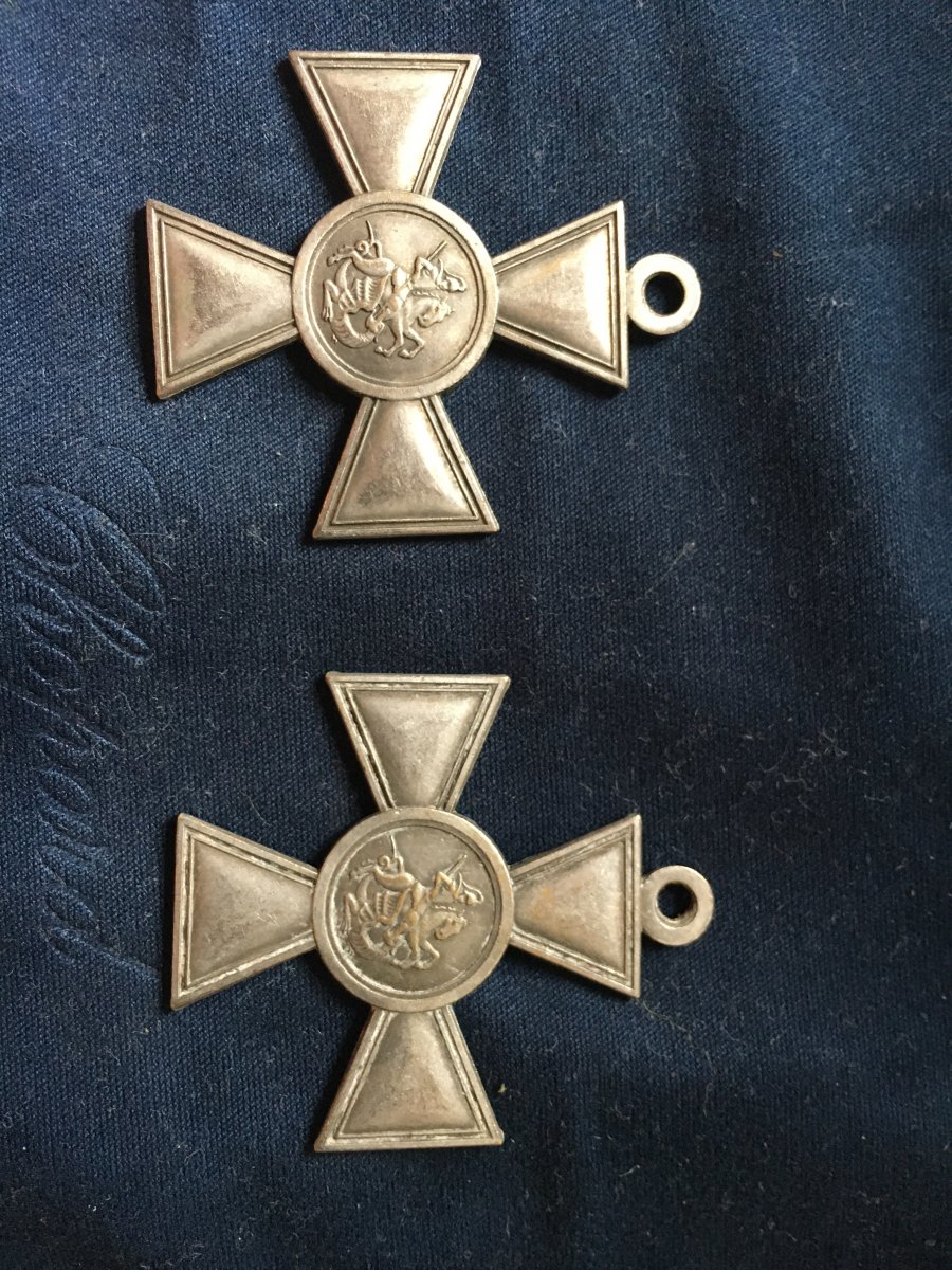 Увы, мл. унтер-офицер Дубовкин Н. М. крест, показанный в сообщении ТС, в руках не держал... Оба креста - копии. Обратите внимание на уши, медальоны, вензеля, цифры, буквы .... По 2-й степени - вообще с номером "накосячили" - их столько не было...