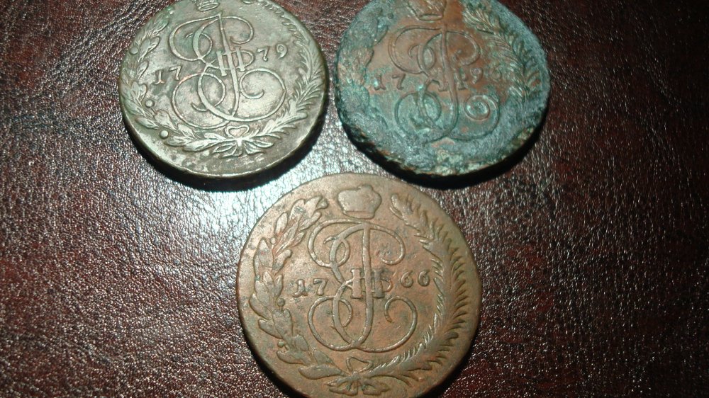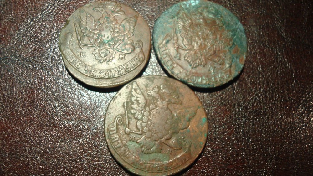 Самый распространенный из троицы - пятак ем-1779, более "редкие" но не сильно отличающиеся по цене от первого ам - 1796 и мм - 1766, хотя сохранность последнего не очень... ну а цены...: http://collect.aukro.ua/carskaya-ro...e_from=&price_to=&string=&change_view=Найти >