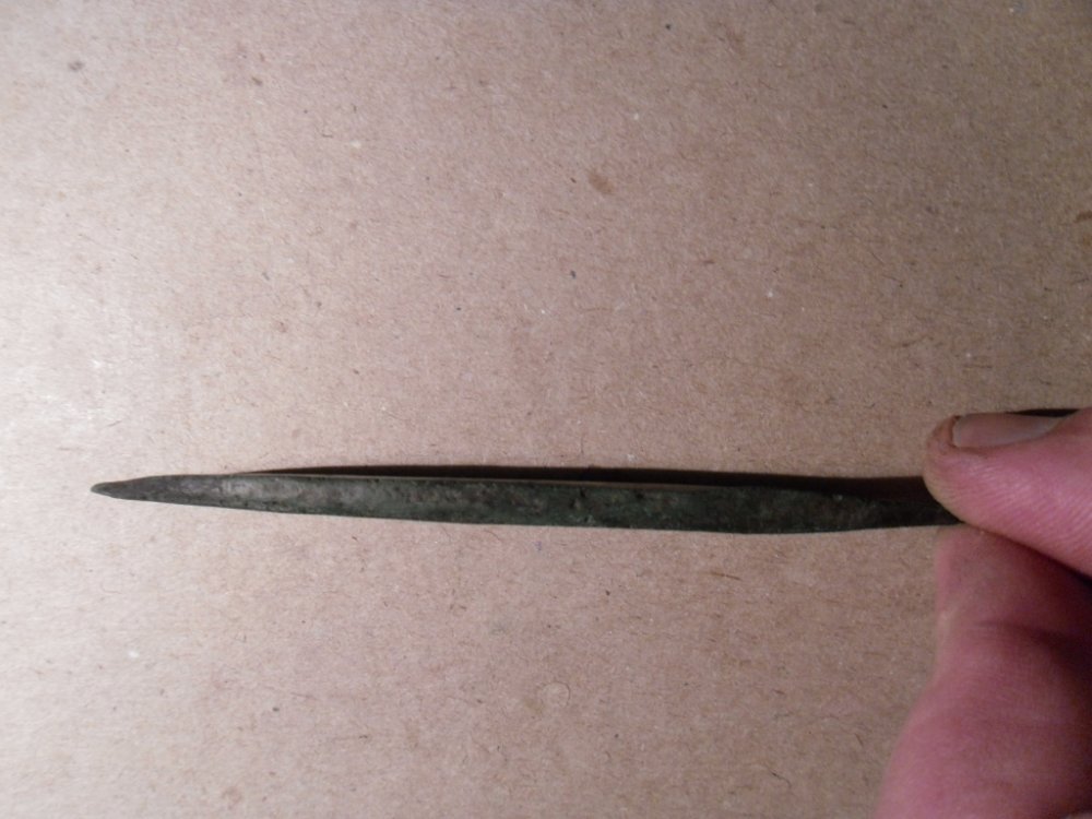 Добрый вечер форумчане. Помогите определить- НОЖ, или НАКОНЕЧНИК. Материал бронза. Найден на склоне оврага.Из сопутки-ничего.