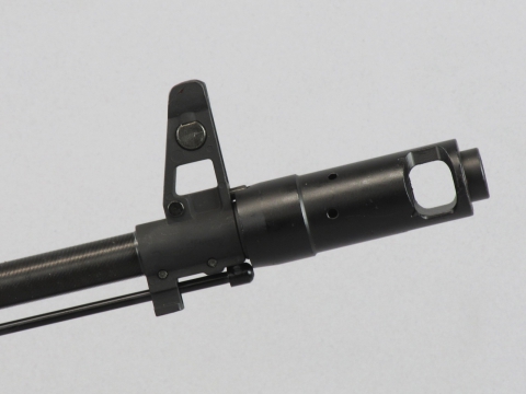 На АКСУ-74м - полум"ягас,так як довжина ствола в автомата близько 15см порох з1 стандартного патрона не встига згор1ти, тому конструктори розробили полум"ягас тако1 форми.