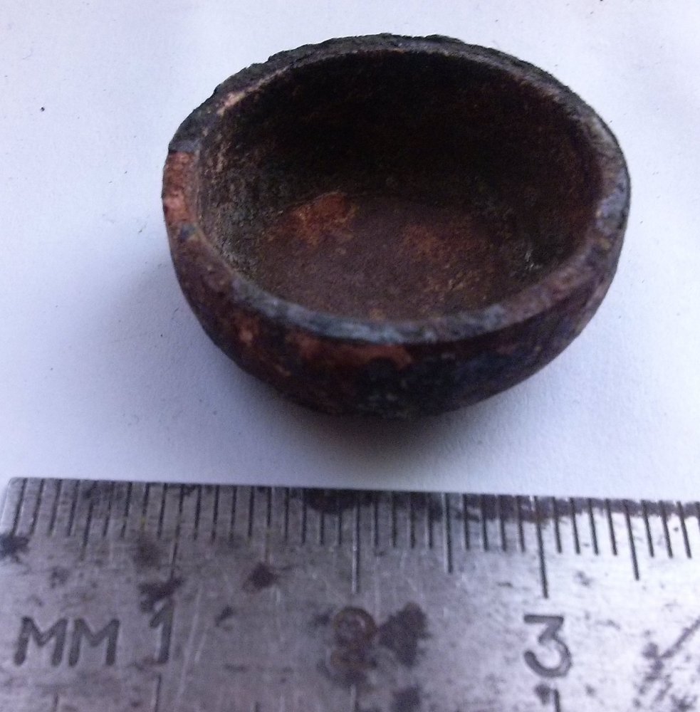Уж больно правильные формы у этого куска железа, может нож или нак. Найден недалеко от старого русла реки Волчья (Днепропетровская обл.) Сопутка медная чашечка ( даже не представляю от чего) и медалька три икса советской армии и флота.