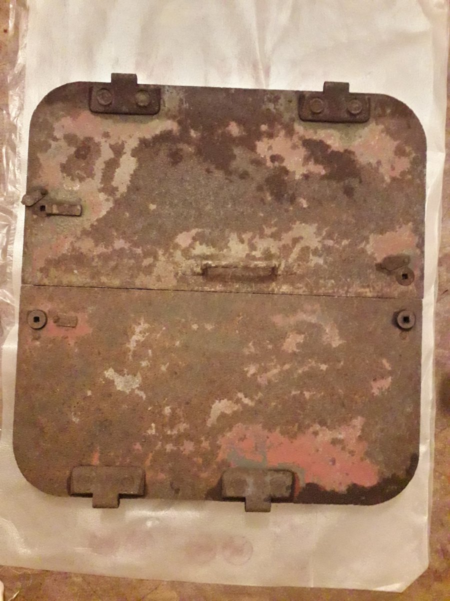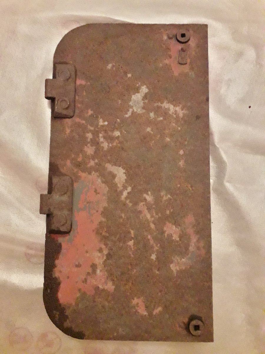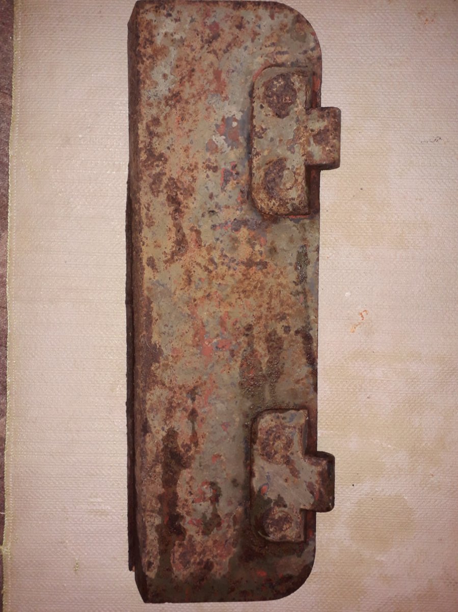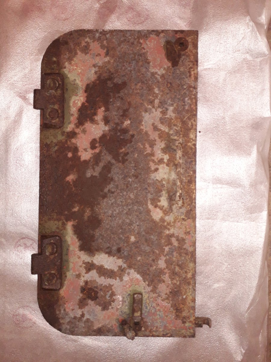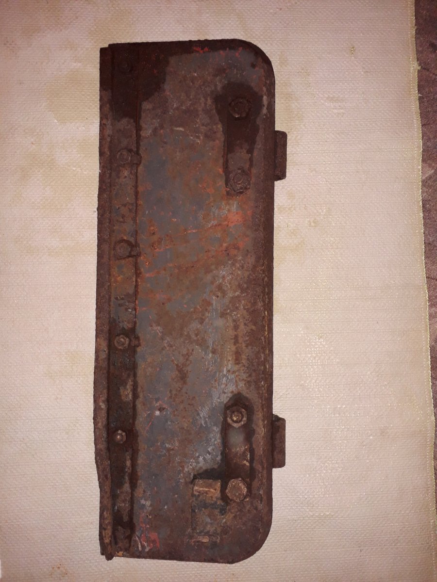 просматривается красный грунт,клейменная номерами ,похоже на люки радиатора с т 3 ранних модификаций ,прошу высказать мнение камрадов толщина 19мм