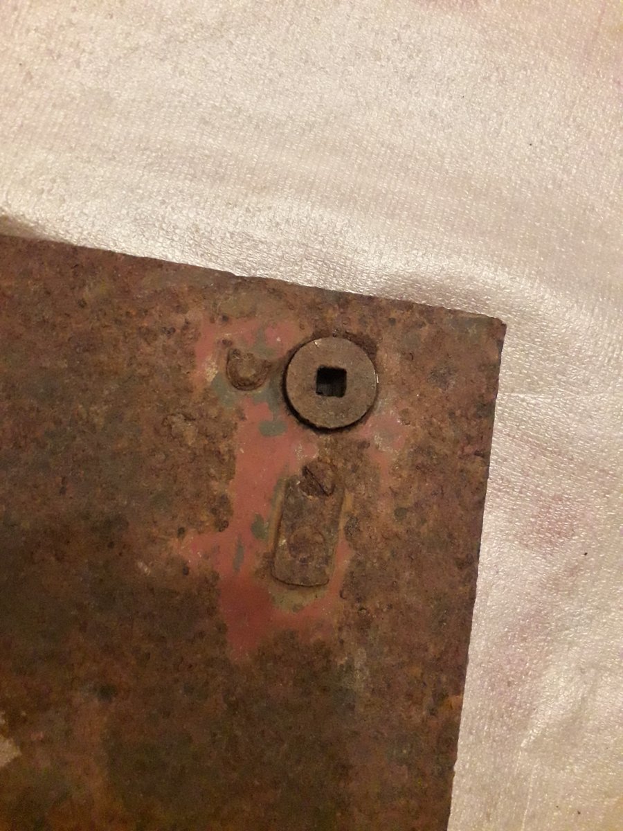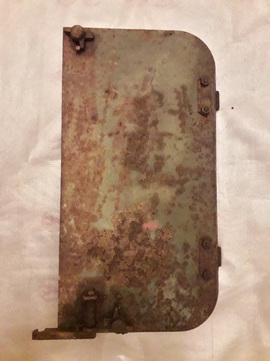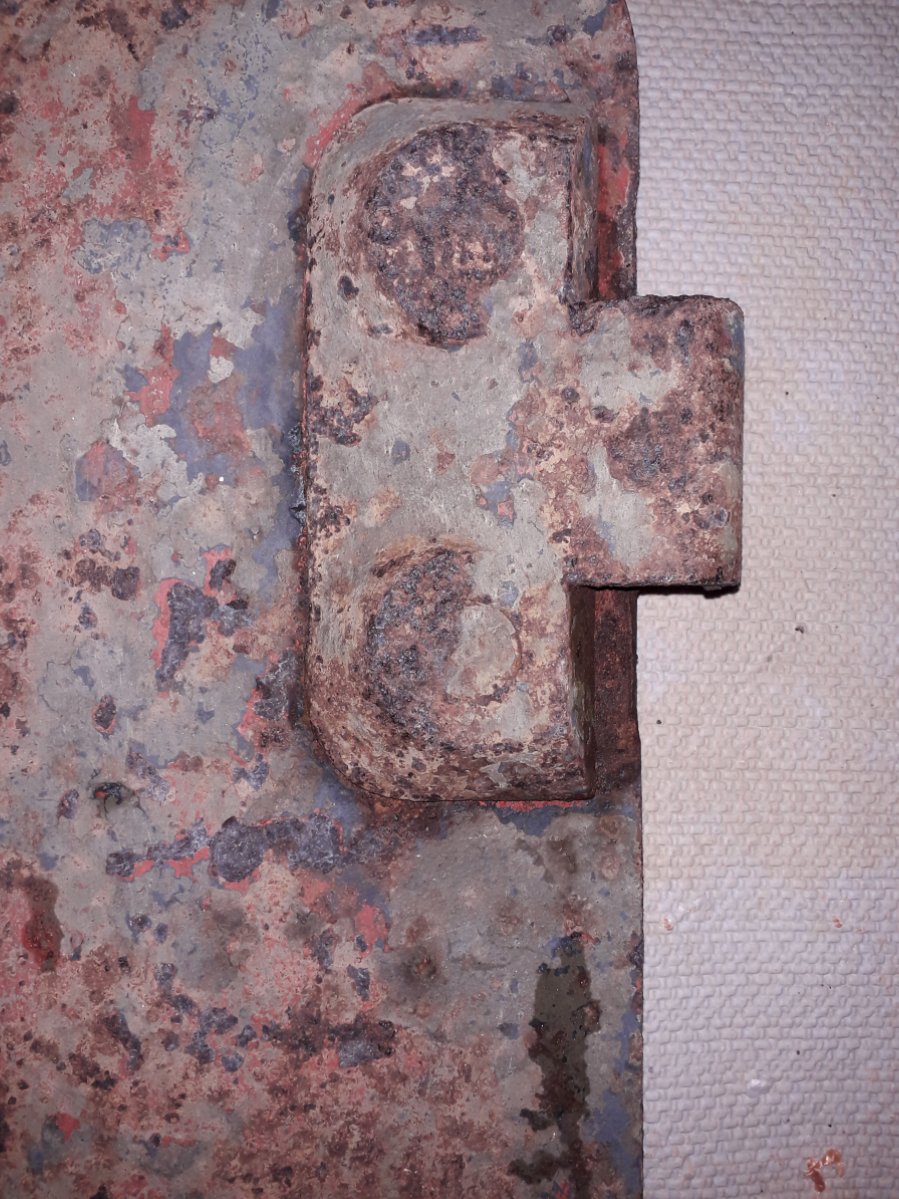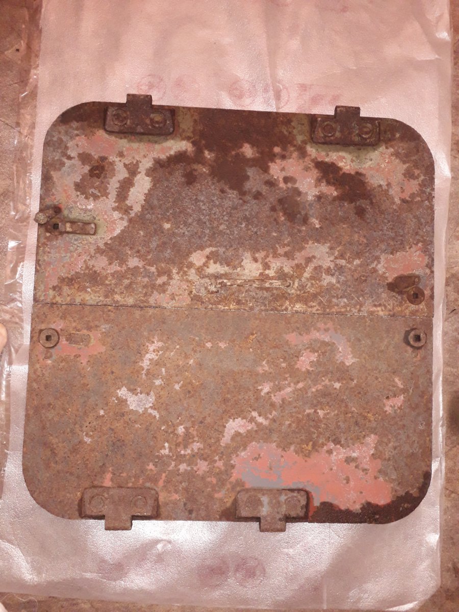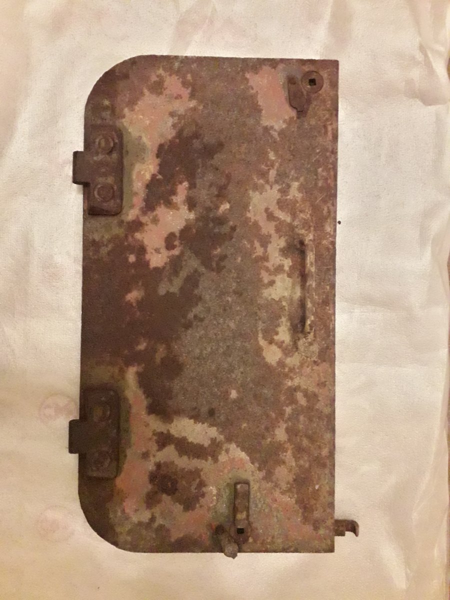 просматривается красный грунт,клейменная номерами ,похоже на люки радиатора с т 3 ранних модификаций ,прошу высказать мнение камрадов толщина 19мм