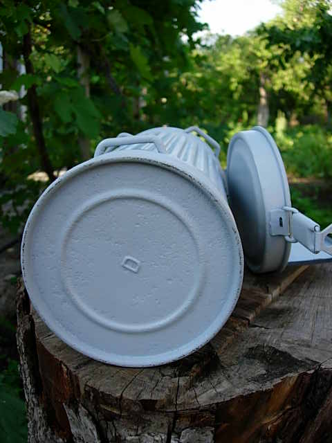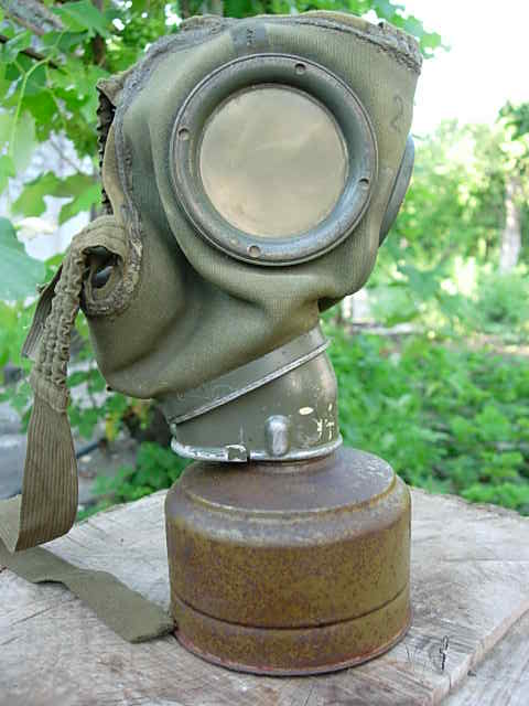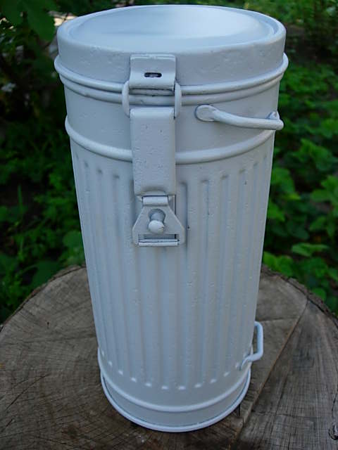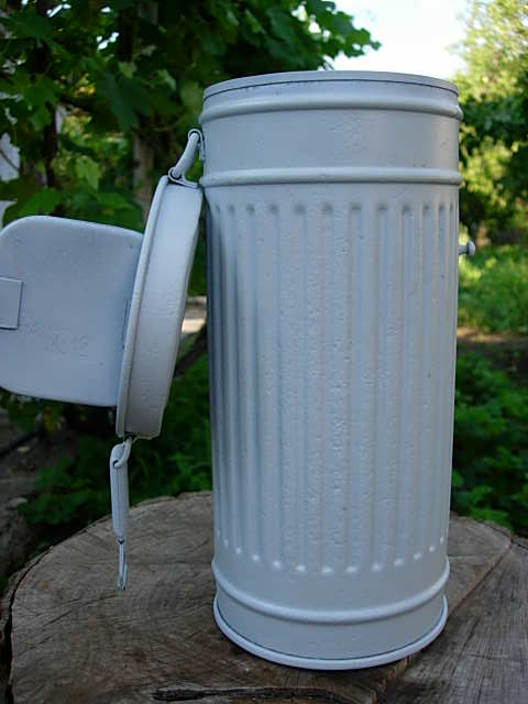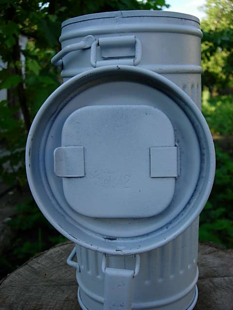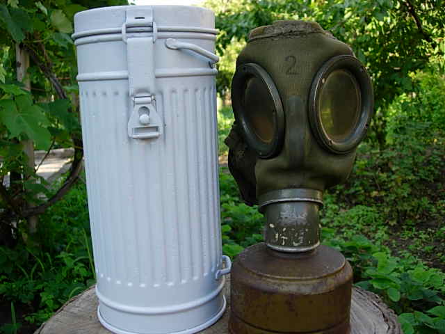 Предлагаю Вашему вниманию сию вещь.Бак был практически без краски поэтому дабы не ржавел покрыт грунтовкой,которую при необходимости легко смыть.Состояние на фото.Противогаз 38года,состояние твёрдая 4(обрезан длинный ремешок,который одевали на шею).Много различных клейм.Цена 500грн.Доставка за счёт покупателя только по Украине.