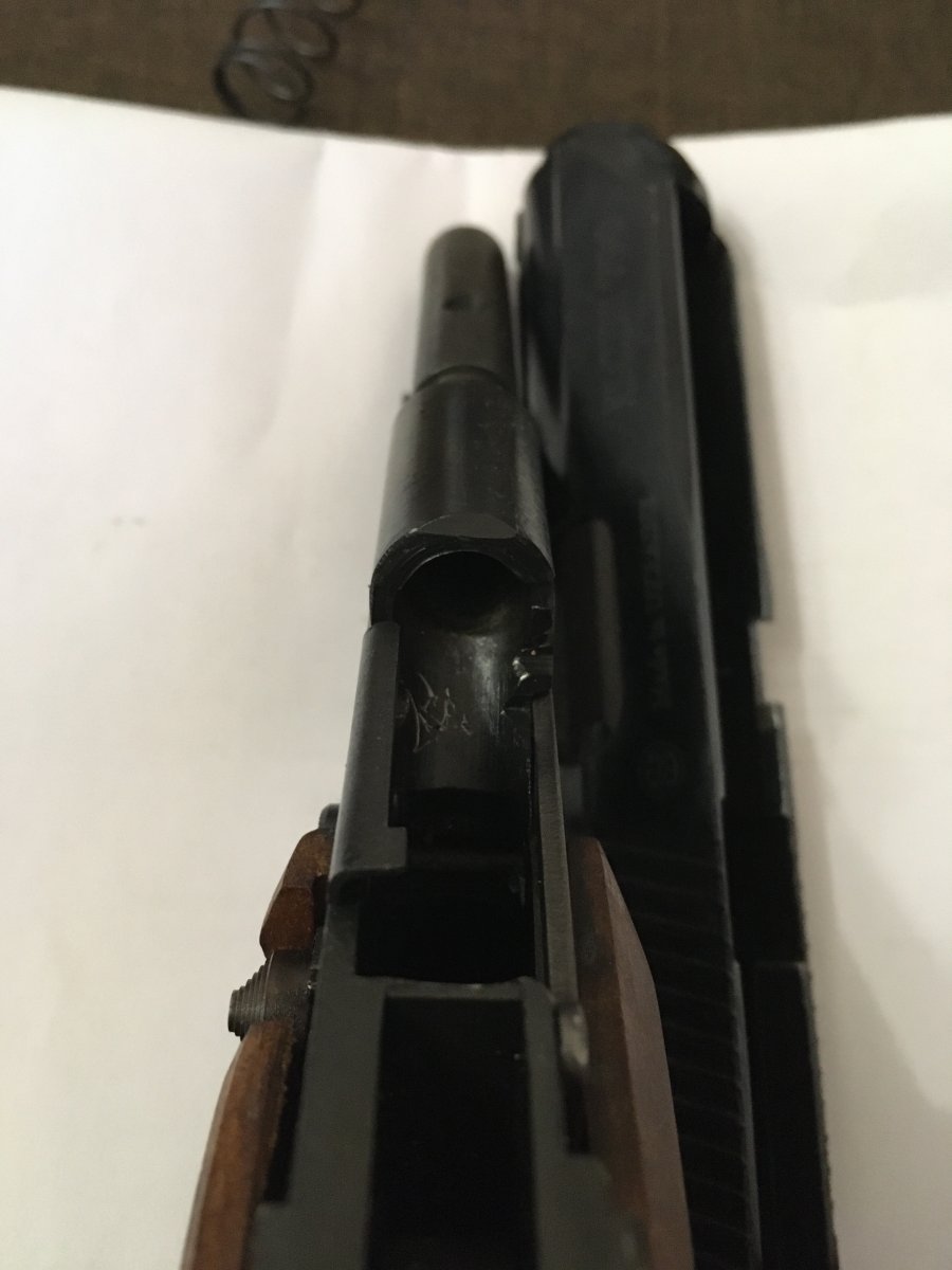 Собственно продам.Довольно редкая лазерная гравировка(может ошибаюсь),но лучше,чем вдавленные клейма.Настрел ~3 магазина.Из допов:стальная спусковая скоба,стальной спуск,ореховые заводские накладки с пропиткой,кожаная новая кобура,стволик воронен.Больше изменений не вносилось.За все видится цена 3000грн.Пластиковые накладки с винтами бонусом+магазин патронов.По арифметике выходит дороже.
