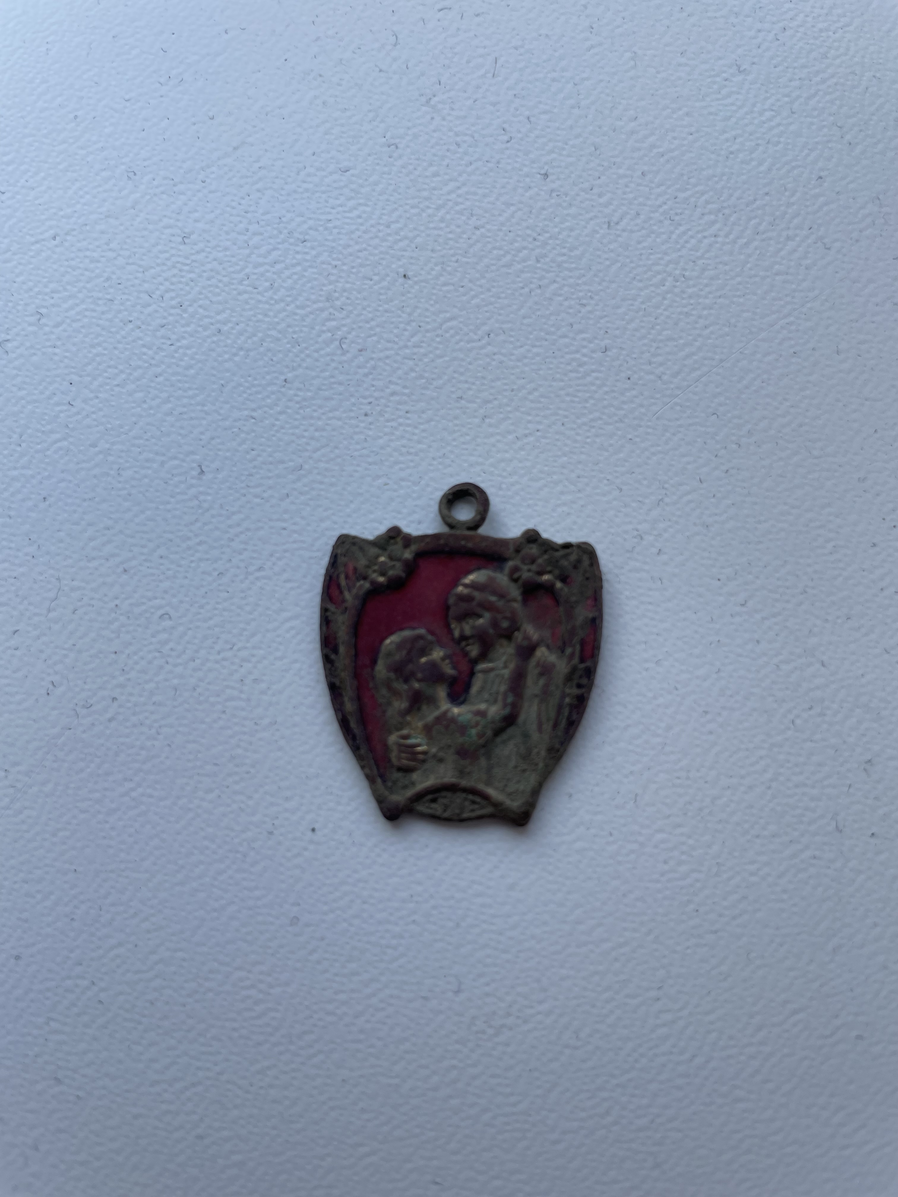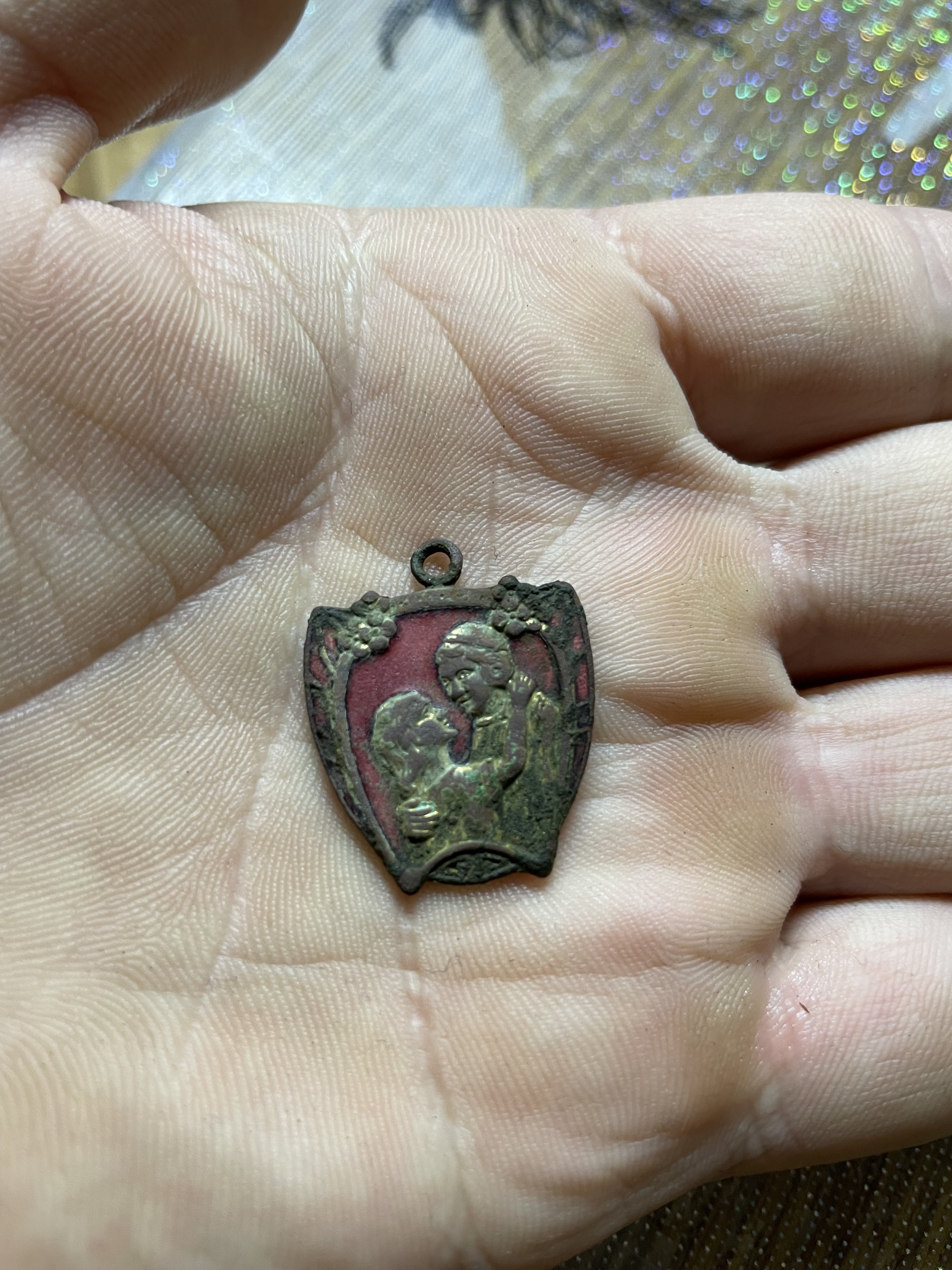 На медальоне с большой долей вероятности изображены Ромео и Джульета. Его на груди носил наверно какой-то фельдфебель. https://www.ebay.com/itm/176857351905?_skw=antique+silver+buttons&itmmeta=01JMWFHD6RGYPN781Z1DTFTDQ0&hash=item292d8506e1:g:5mMAAeSwET9ntTte&itmprp=enc:AQAKAAAA8MHg7L1Zz0LA5DYYmRTS30mktEudK/9bVVzbCaAm+RbM0+cOyZhnBbDN7res34/3k5oD5cBo8OGDjPG00pDhn026zwuIGWhdg2H5CoBkmjDIT+K4XwxNI9KdTiX/C