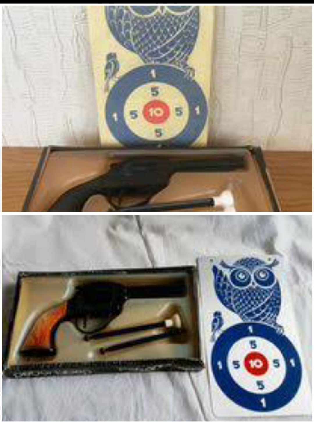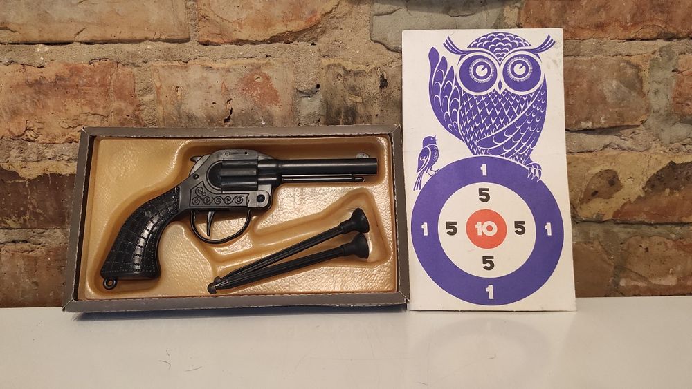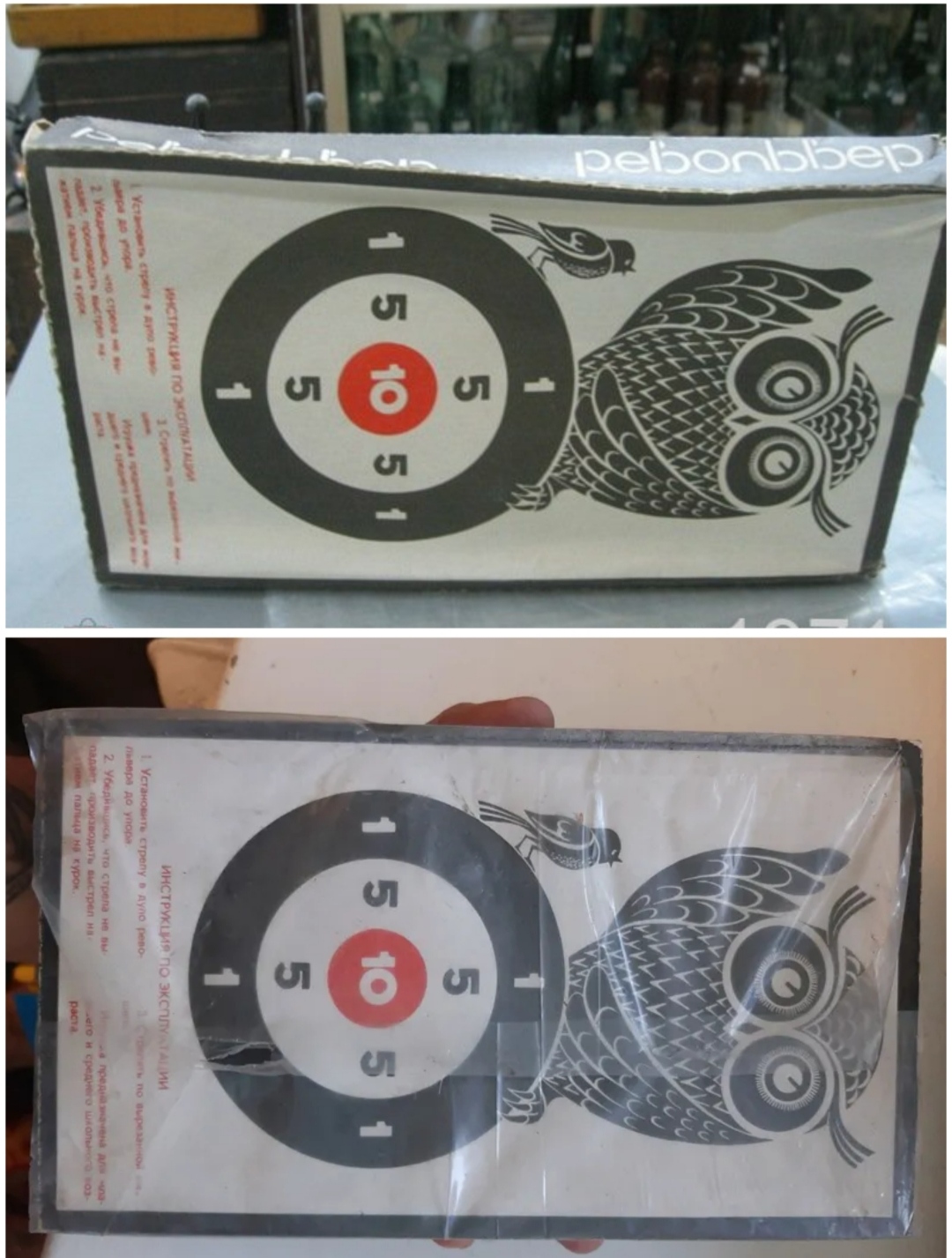 Мішень входила до комплекту револьвера з присосками, періоду совка. А в кінці і зовсім просто друкувалася на коробці..