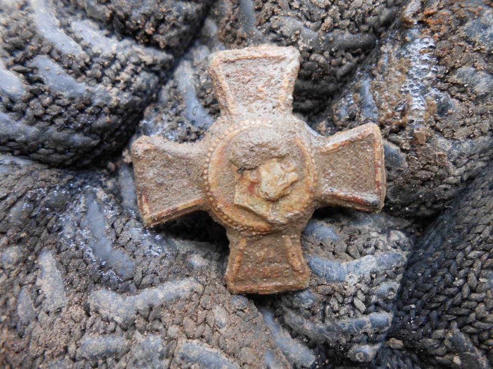 А найкрутіша знахідка в нашого товариша - срібний колт,досить великого розміру,наскільки розумію - з пізніх,14-15ст.