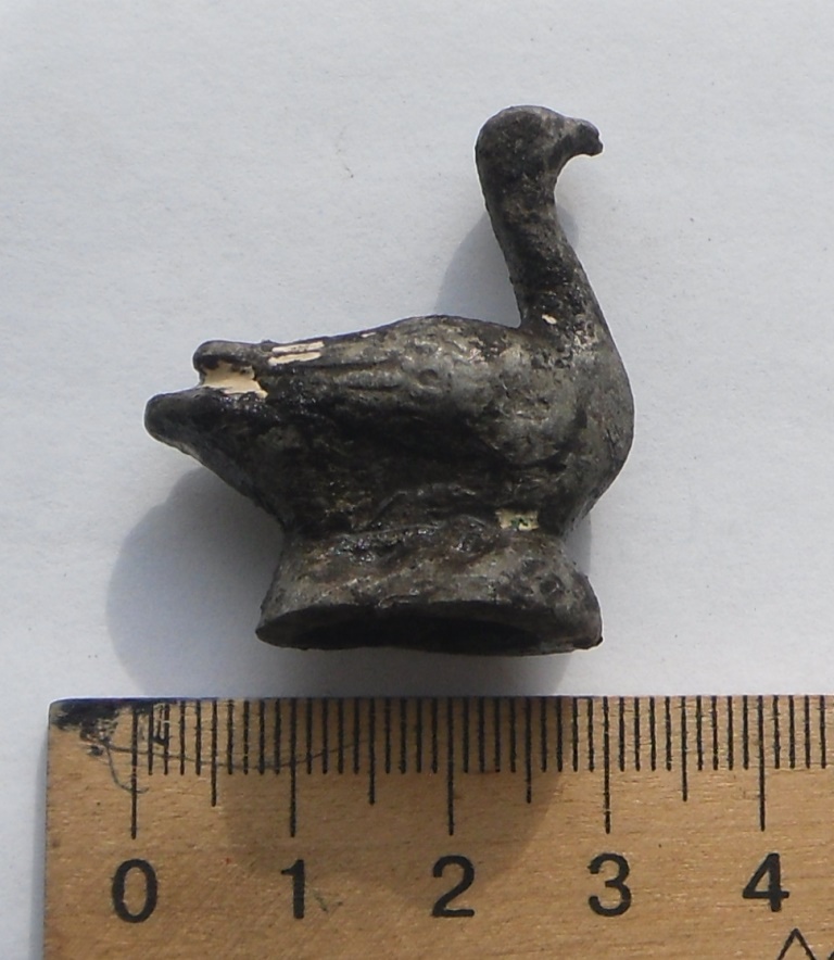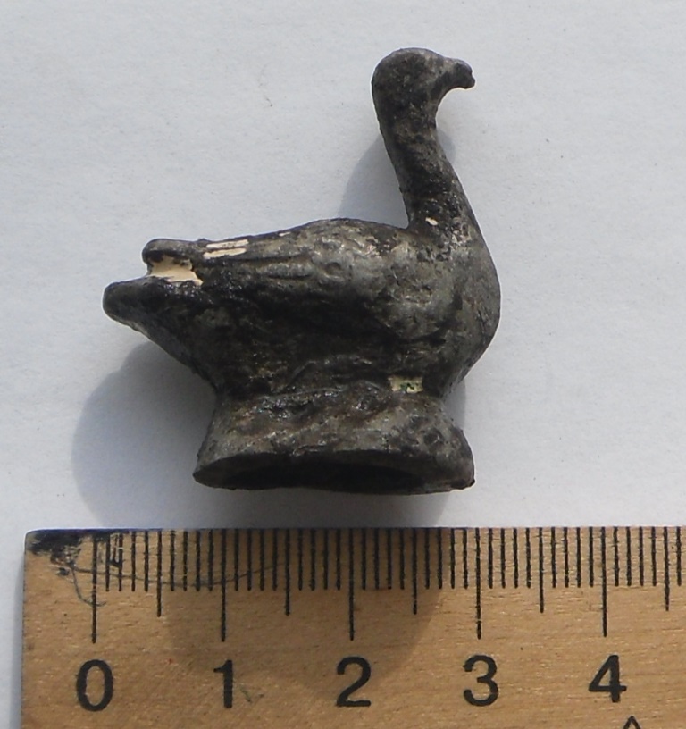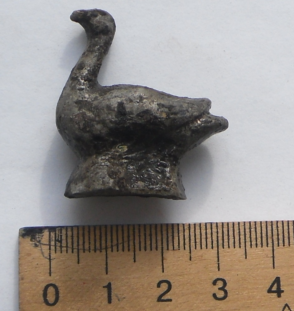 Здраствуйте определите пожалуйста птичку,метал свинец или олово точно пока не знаю,вес 17,1 гр.Сопутка в основном КК и ЧК но есть немного КР и позднего периода.Благодарю за помощь.