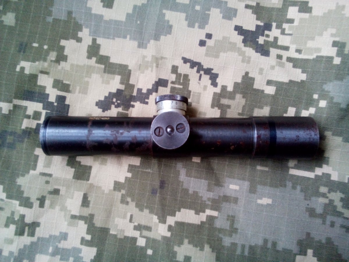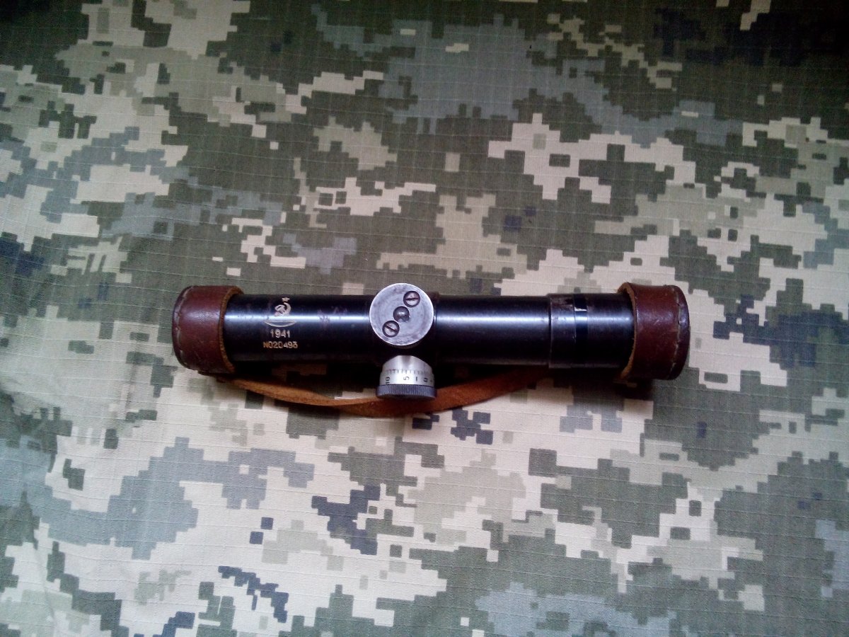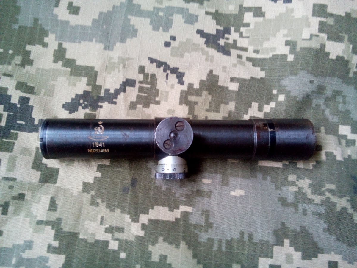 Это изюмский новодел, не оригинал, их можно узнать по характерному кольцу между трубкой и окуляром. Изюмские прицелы бывают с годом 1941, 1942, без года