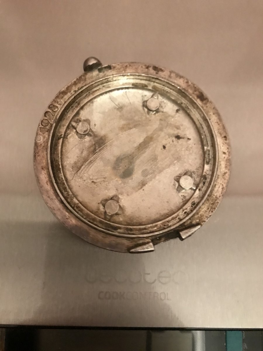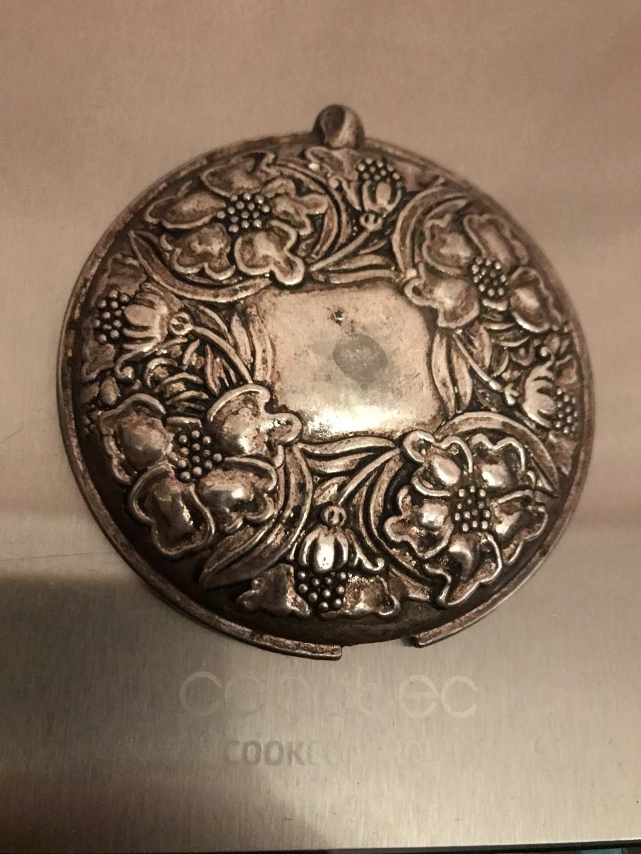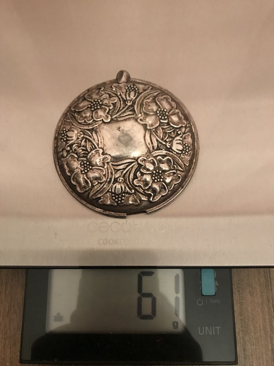 Добрий вечер! Подскажите пожалуйста от чего кришка? Метал похож на серебро, вес 60 грам, стоит клеймо 1928 R