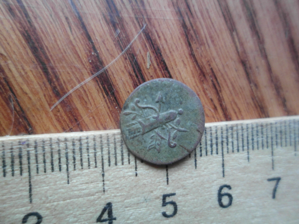 Можливо,мисливський гудзик.На них наносили різні малюнки на мисливську тематику.Ось подібний,тіж три крапки на звороті: