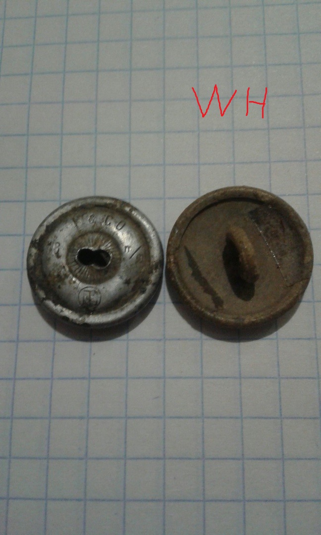 Доброго времени. Подскажите по пуговице. С виду как вермахт но смущает клеймо с якорем, справа пуга WH для маштаба.