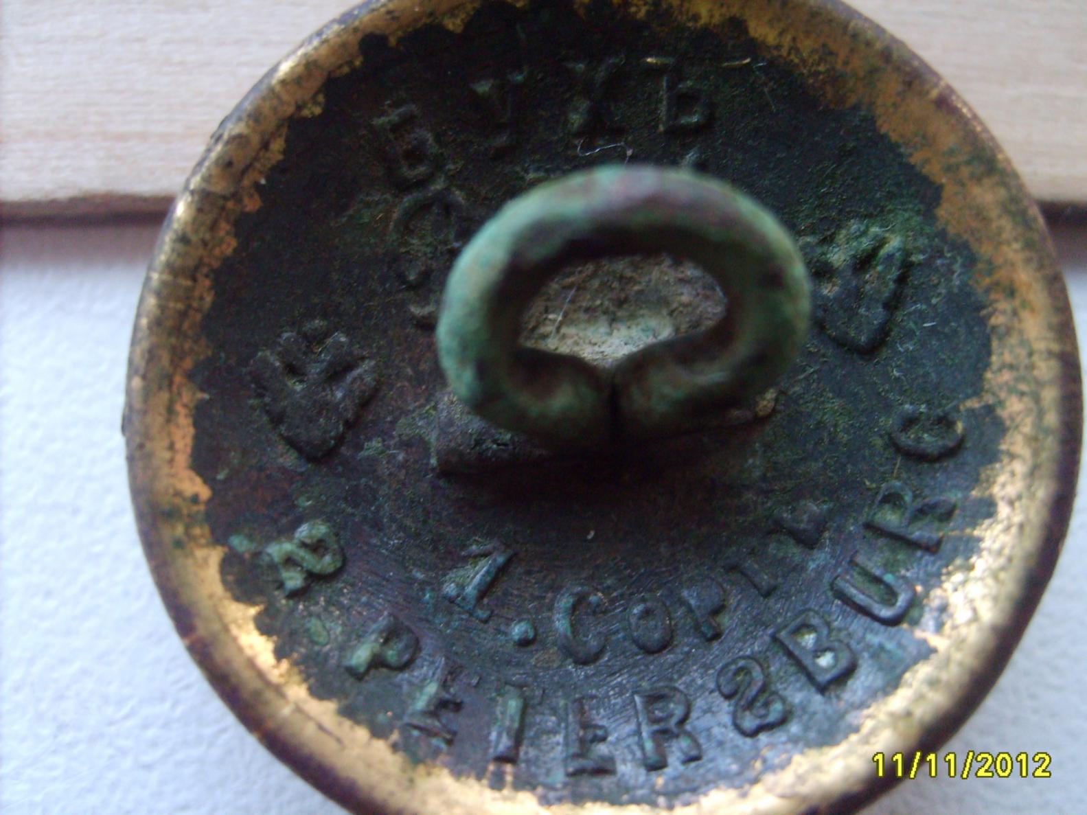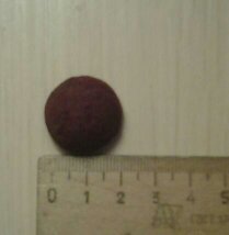 Вот попалась такая пуговица.Диаметр 22мм,материал медь,обёрнута в материал красного цвета.Что за она,подскажите