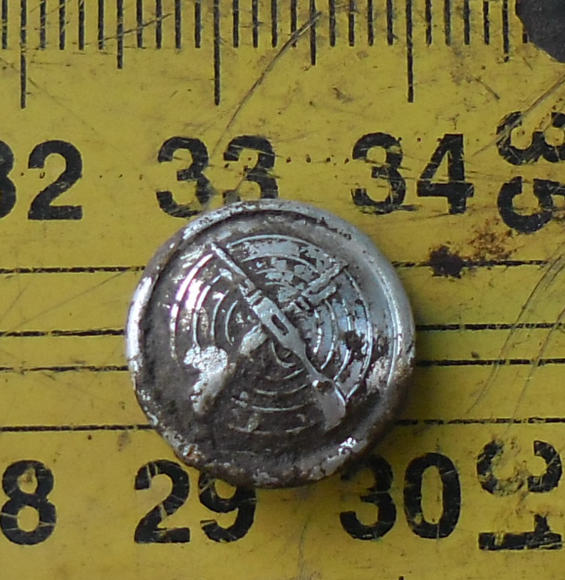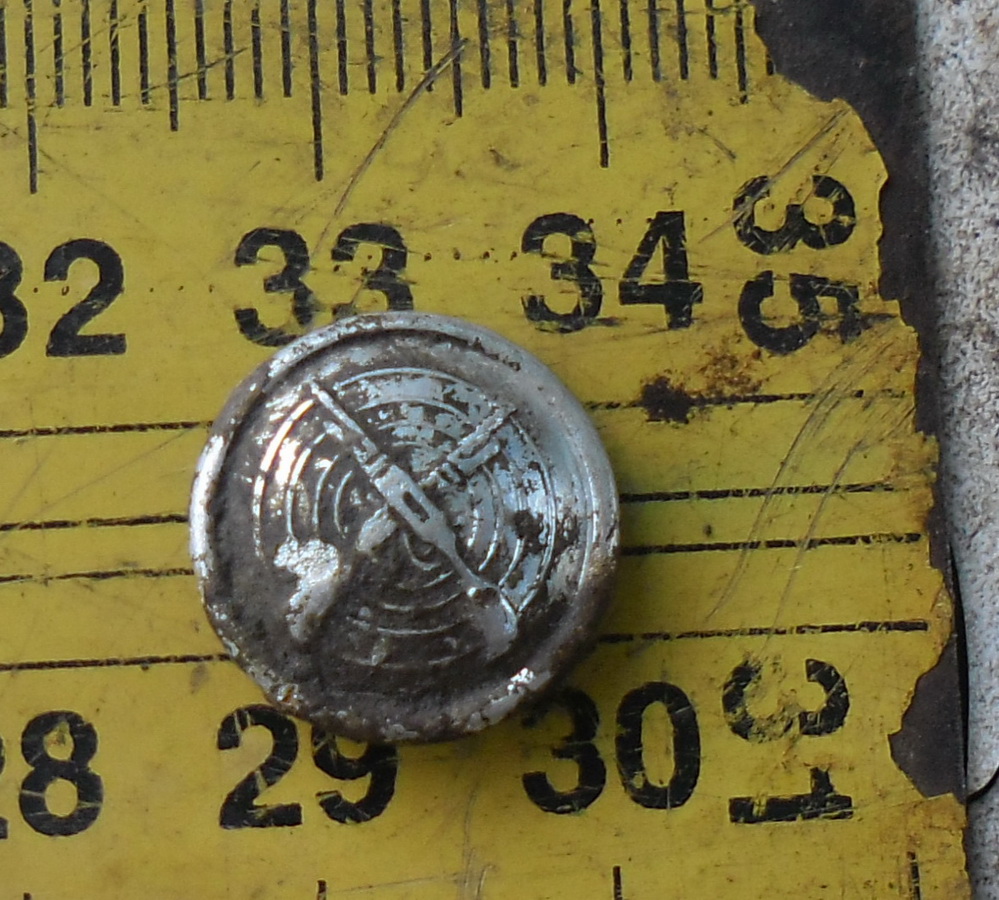 Здравствуйте. Попалась сегодня пуга по сюжету напоминает знак за отличную стрельбу РИА. Верх похоже алюминий ,низ черный метал. Попалась по замесу второй мировой, поместу отметились РККА, Вермахт и АРМИР.