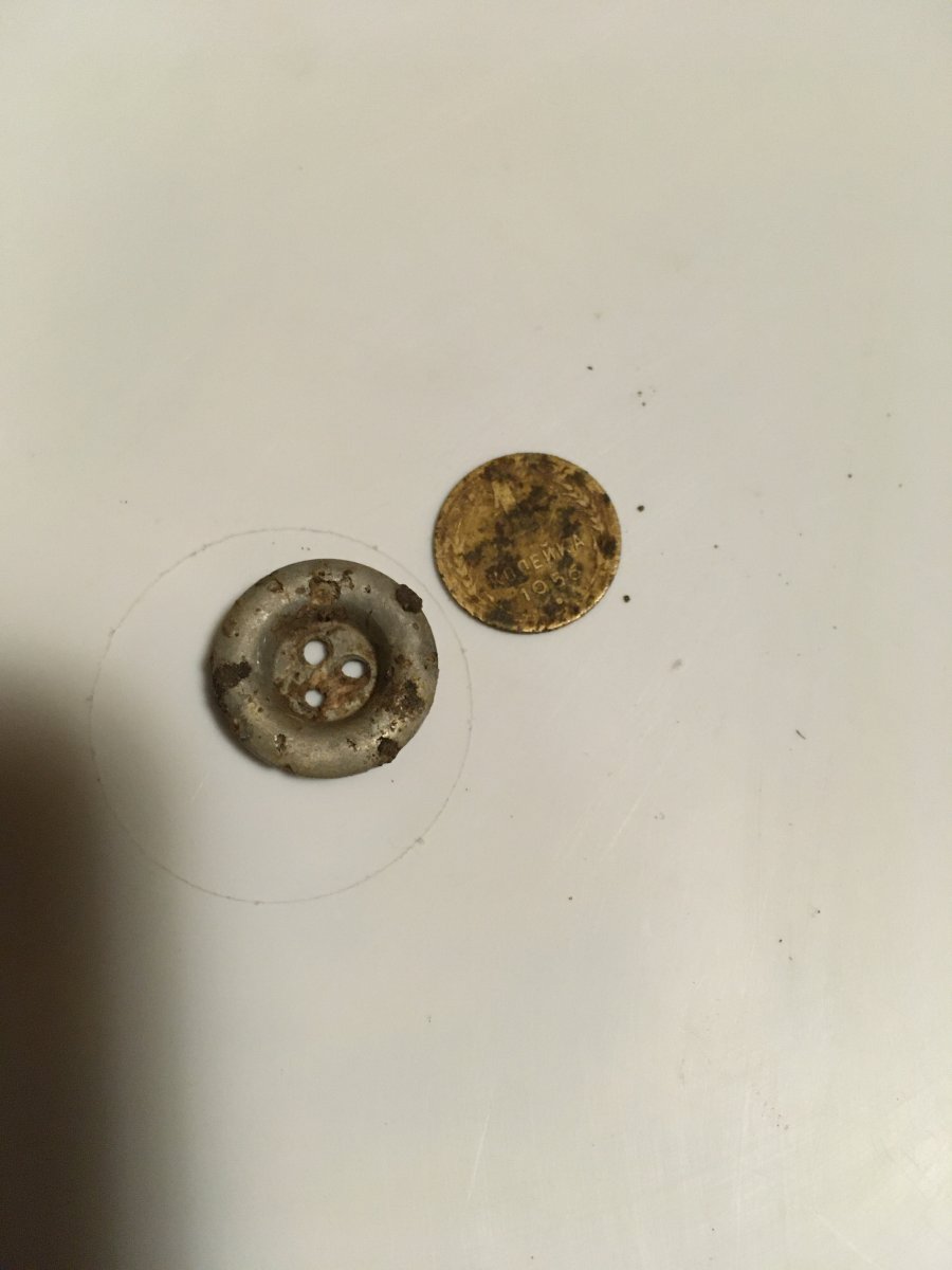 Это немецкая, на досуге почитаете, заодно и свою найдете Виды немецких пуговиц - Амуниция и снаряжение - Военная история, оружие, старые и военные карты (xn--80aaxgqbdi.xn--p1ai). Так а с замоченной, что?)
