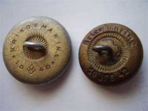 Помогите оценить пуговицы.Состояние почти идеальное.У большой потёртость по краям,клеймо 1940 г. .У маленькой-потемневшее покрытие(какое должно быть не знаю),1942г. Материал-алюминий(?).