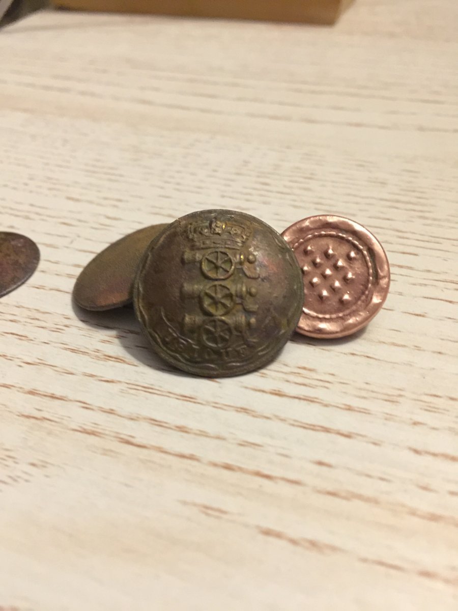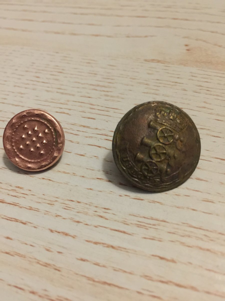 День добрый. Пуговица с тремя пушками - пуговица Королевской Артиллерии Великобритании. Использовалась: 1840-1855гг. То есть это пуговица с Крымской войны.
