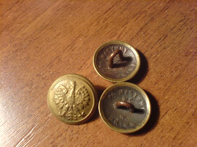 Дані гудзики належали рядовим солдатам Польської армії до початку Другої Світової війни. Даний тип гудзиків почав виготовлятися з 1928 року, ваші кудзики датуються кінцем 30-их років(35-39р.р.). А надписи на зворотній стороні є позначками різних мануфактур на яких вони виготовлятися. По ціні до 15 грн один