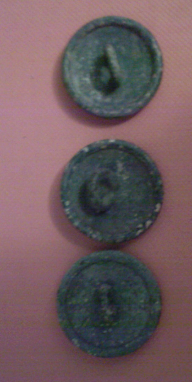 Пуговки кительные, в родной краске, у одной примята петелька. Немятые пуговки клейменные, количество 3 шт.