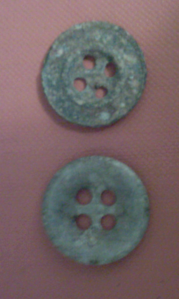Вот такие пуговки четырехдырочные. Одна алюминиевая, не крашенная, вторая - непойми что.