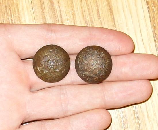 Ответ: Пуговицы Императорская корона. Воинская пуговица полков находящихся под "шефством" императорских особ. Использовалась с 1862 по 1904 год. Кроме армейских частей такие же пуговицы носили некоторые военные училища. Обратная сторона гладкая, без клейм. Самая распространенная дореволюционная мундирная пуговица, что подтверждается и сообщениями о находках. Использовалась в русской армии с 1859 по 1917 год.