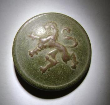 Попалась вот такая пуговица,латунь.До этого латунные попадались пару раз и без цифр,но тоже на погонах.Просвитите,по поводу латунных пуговиц.Может они на ПМВ:confused:Или как ещё?